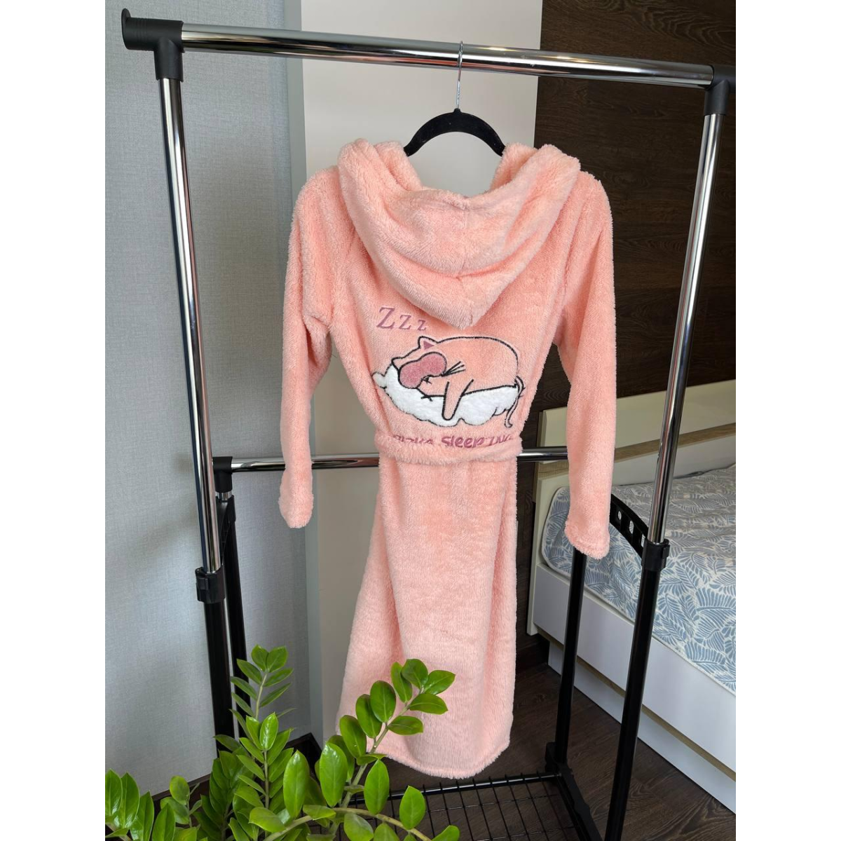 Махровий халат жіночий із капюшоном Персиковий, XL