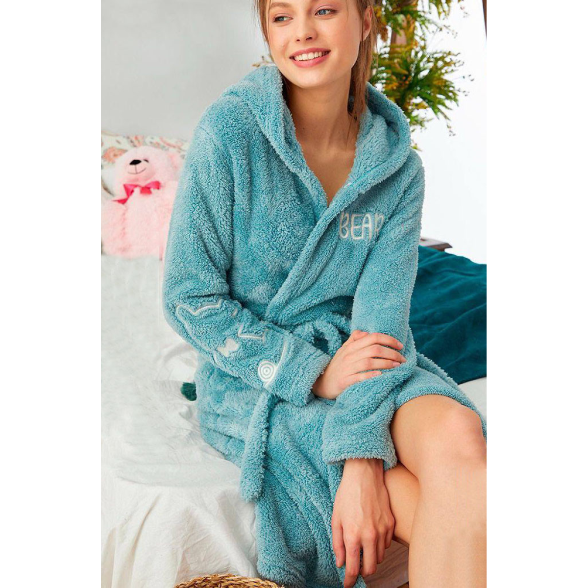 Махровий халат жіночий із капюшоном Бірюзовий, S