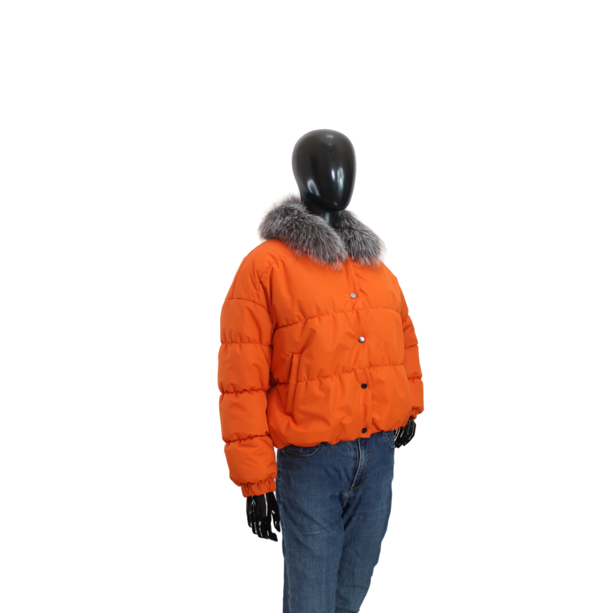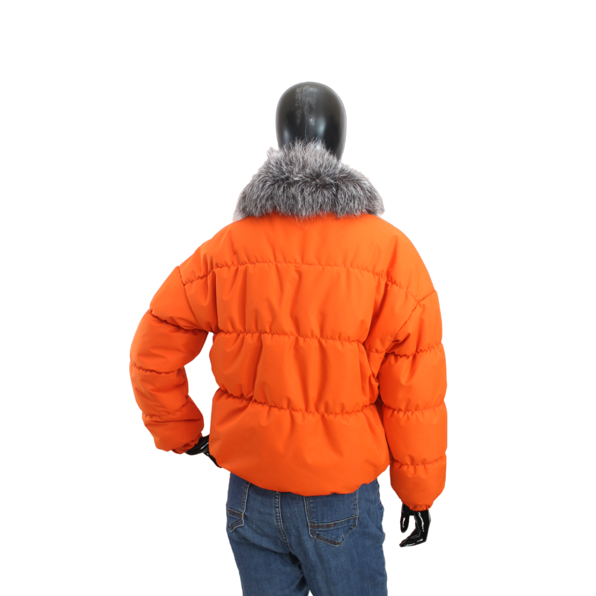 Демісезонна жіноча куртка з хутряним коміром Жовтогарячий, 44