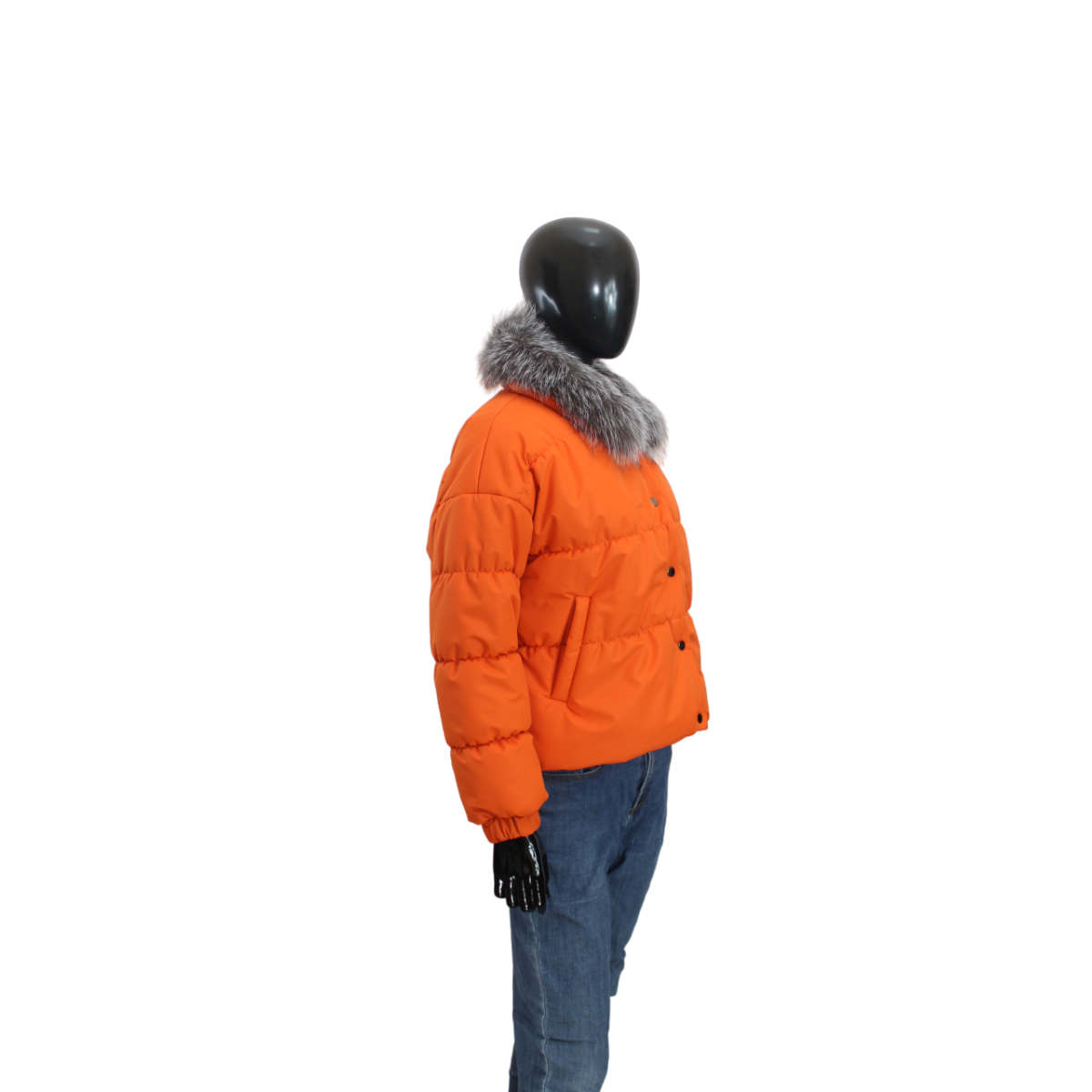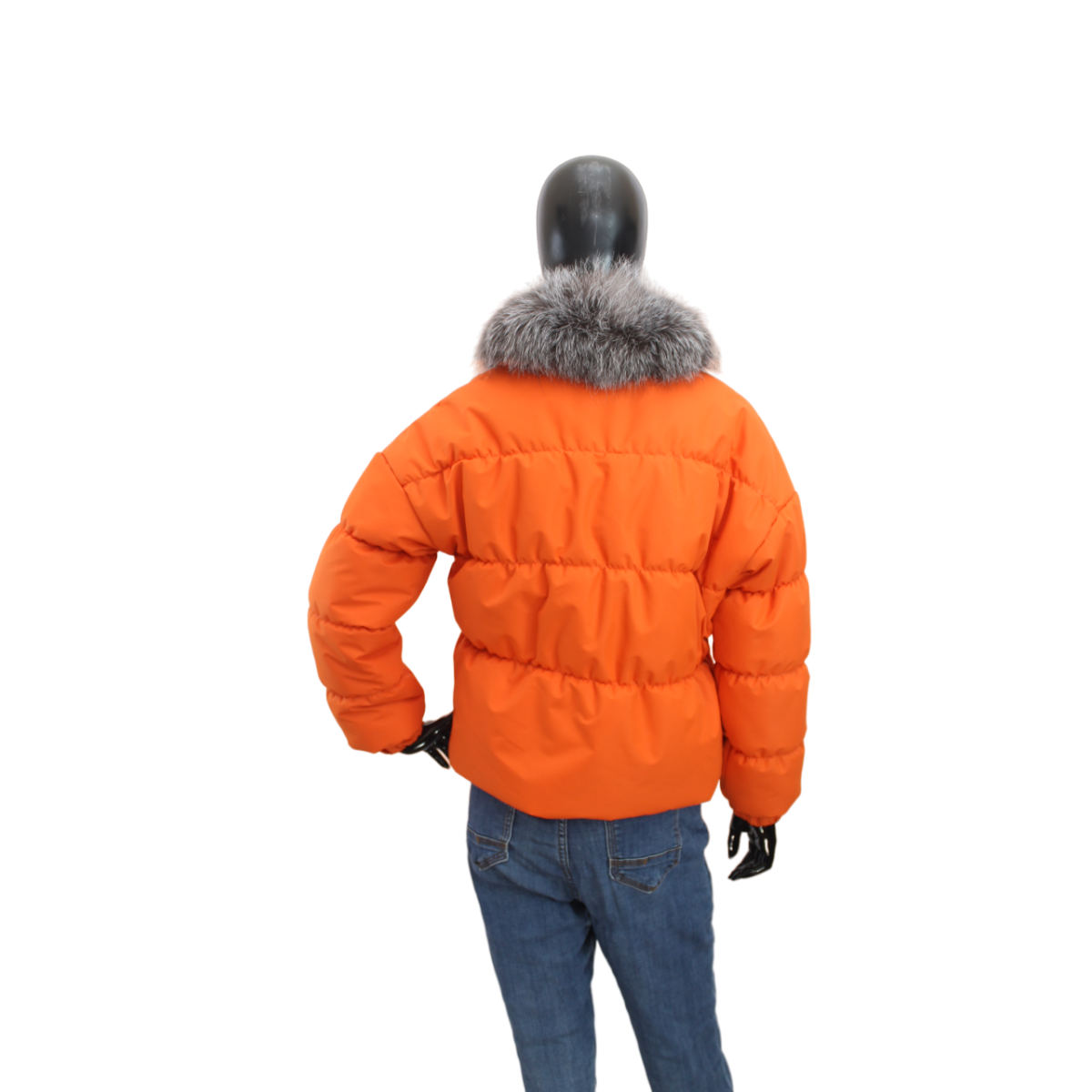 Демісезонна жіноча куртка з хутряним коміром Жовтогарячий, 46