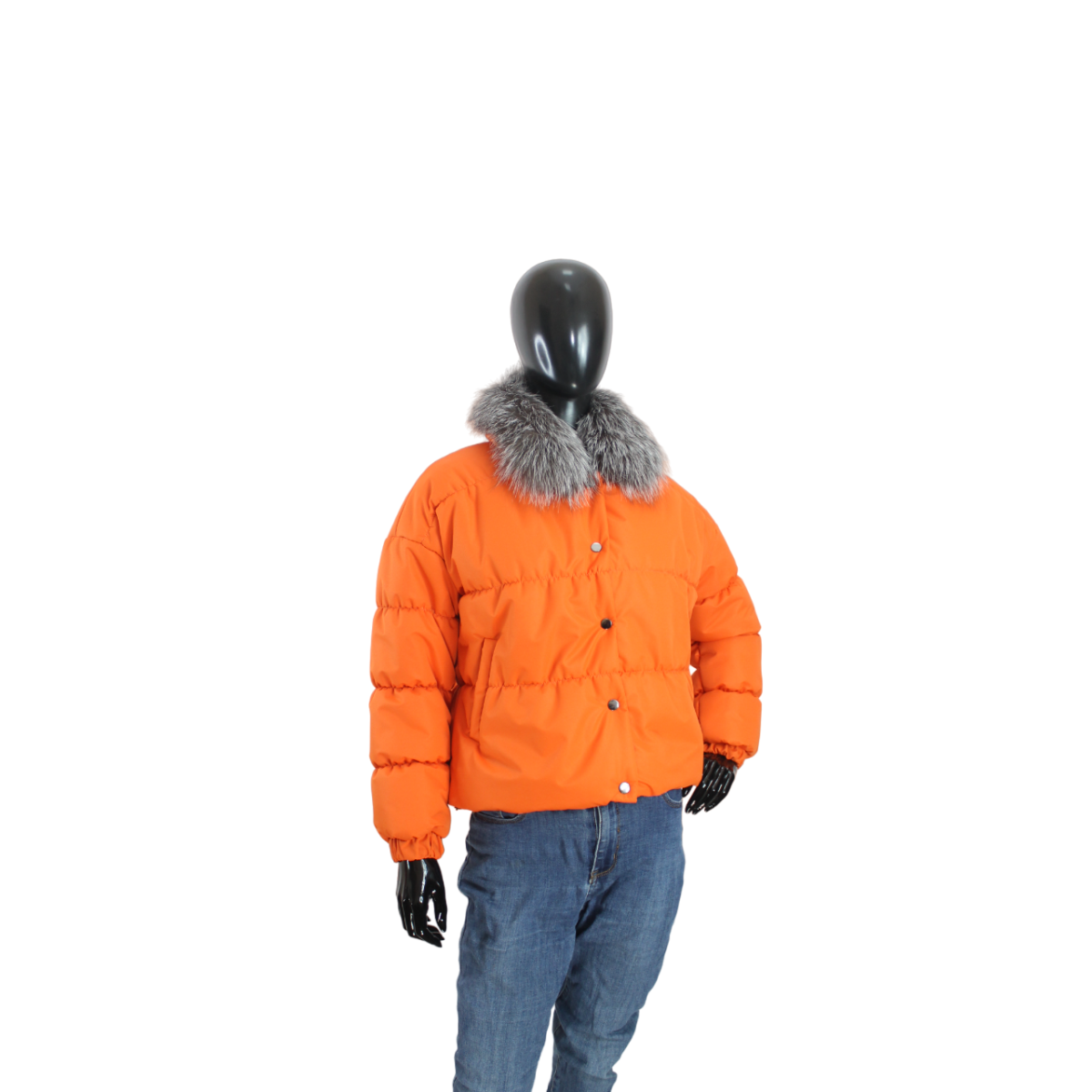 Демісезонна жіноча куртка з хутряним коміром Жовтогарячий, 48