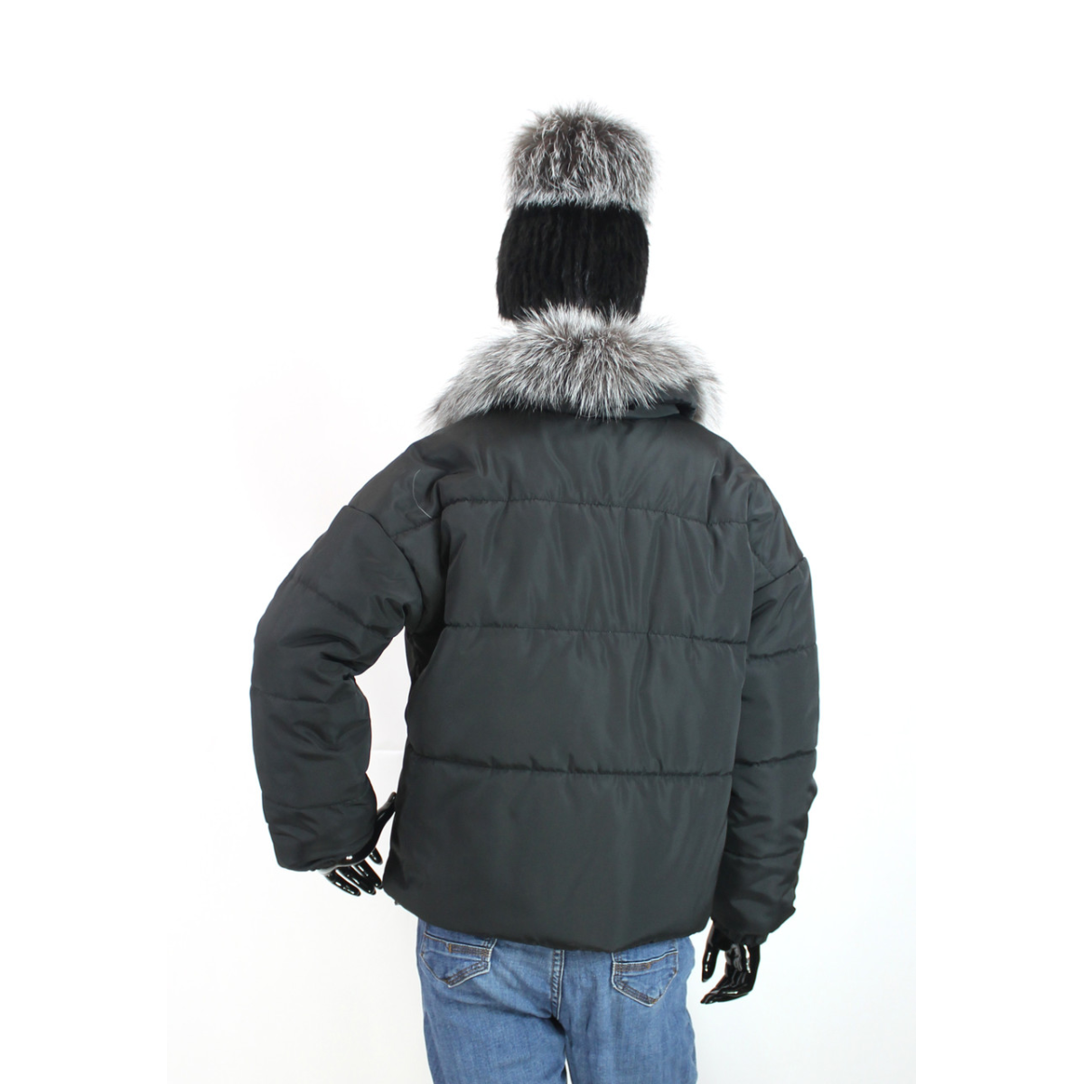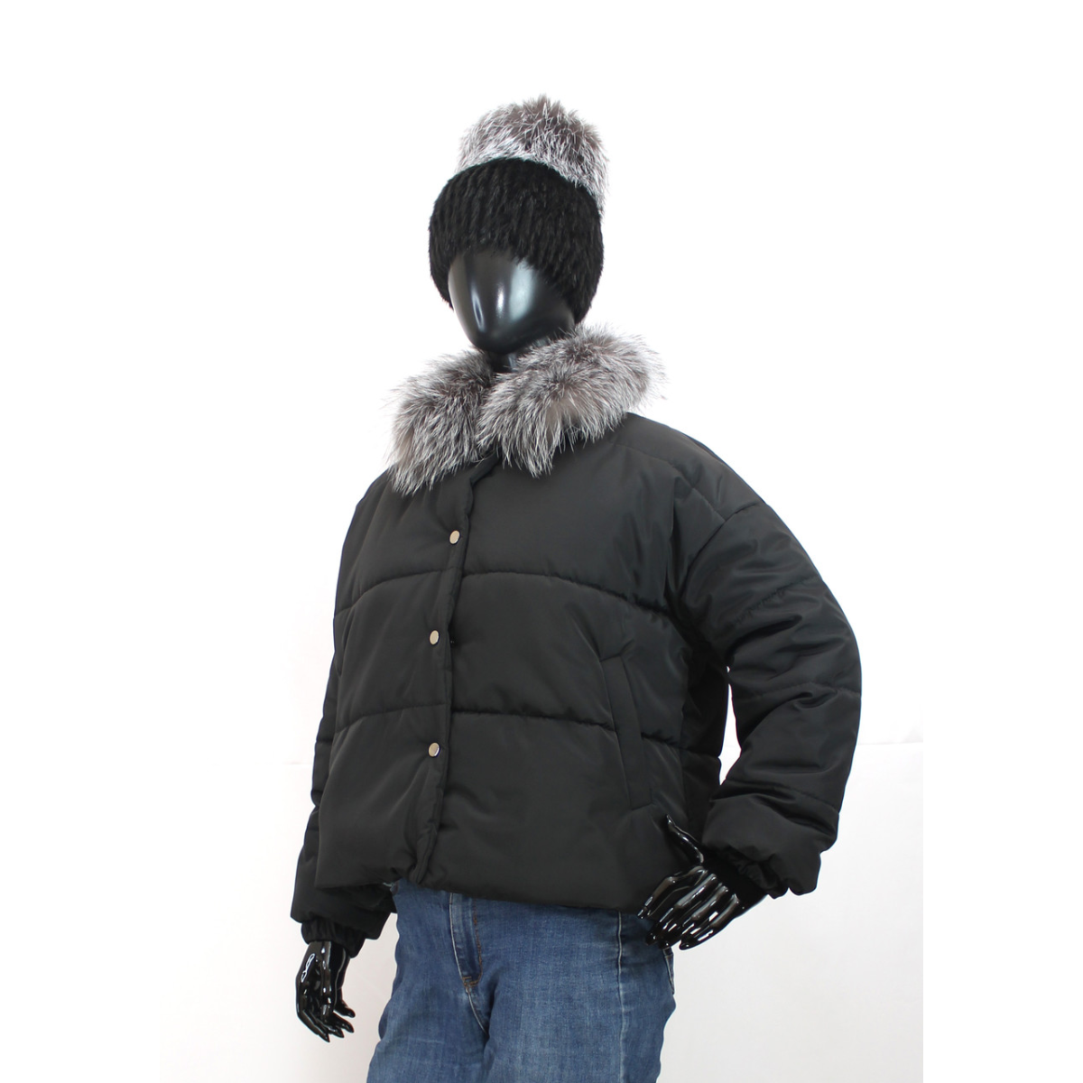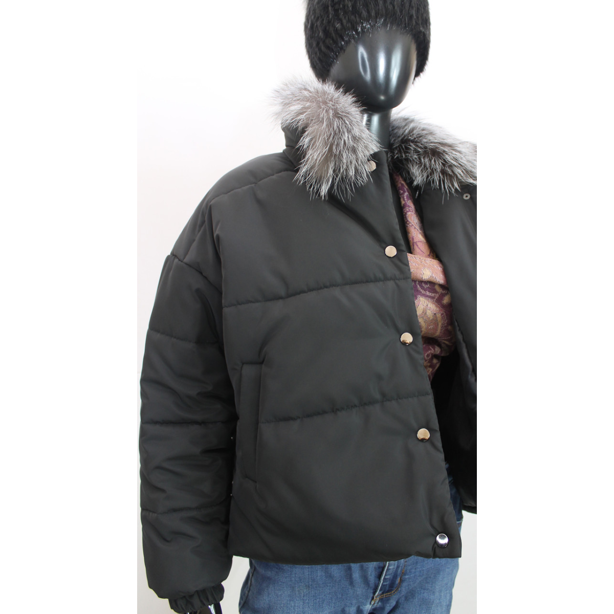 Демісезонна жіноча куртка з хутряним коміром Чорний, 44