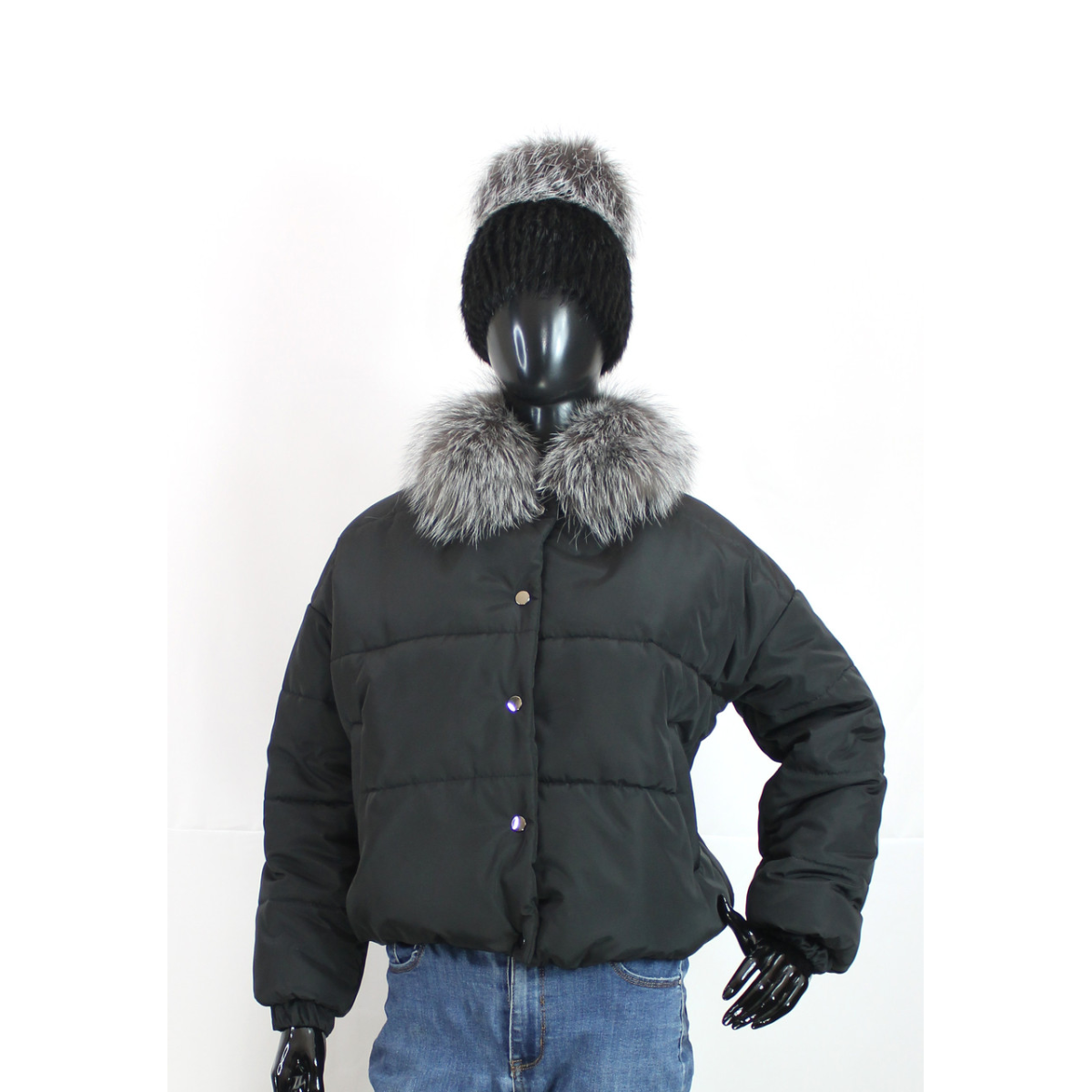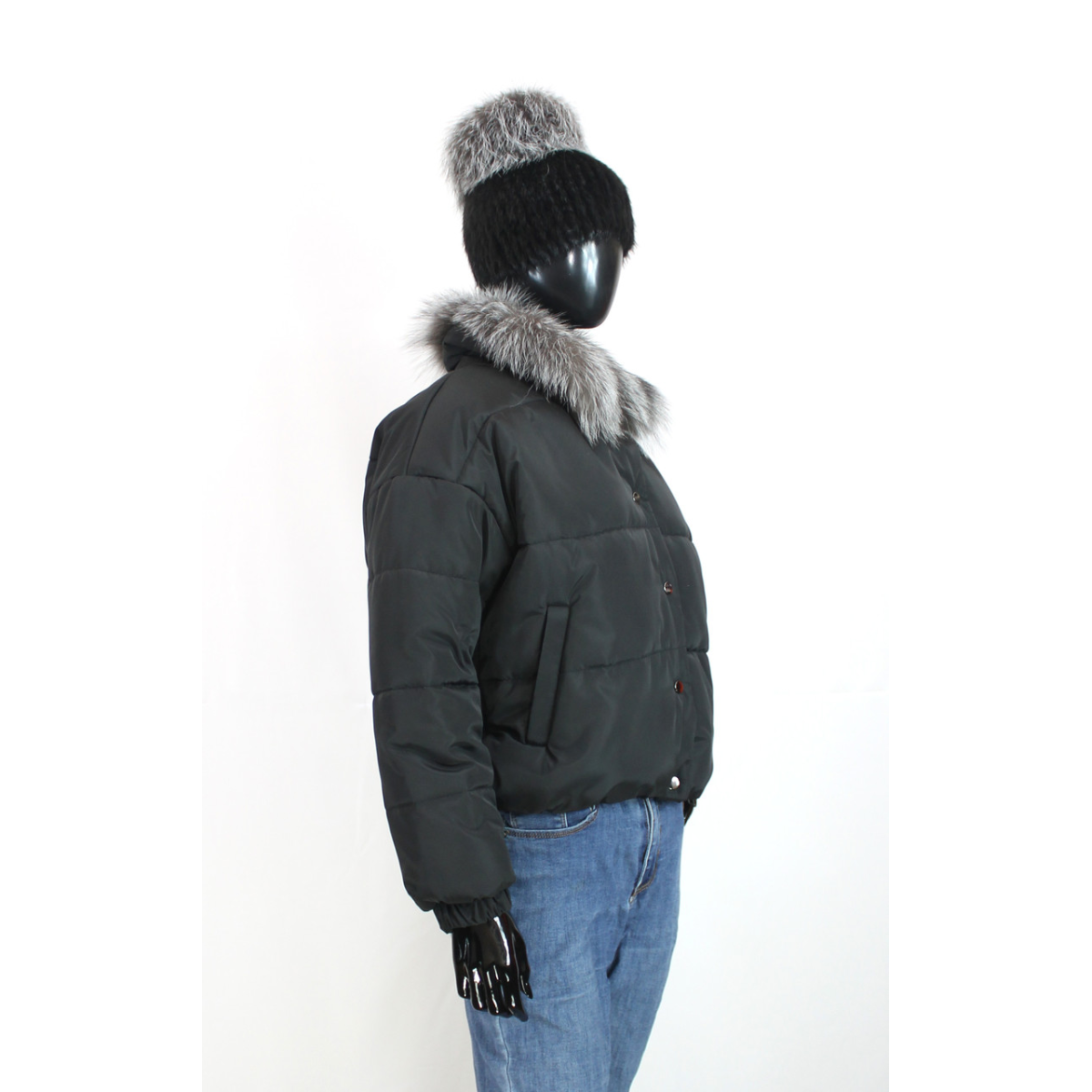 Демісезонна жіноча куртка з хутряним коміром Чорний, 46