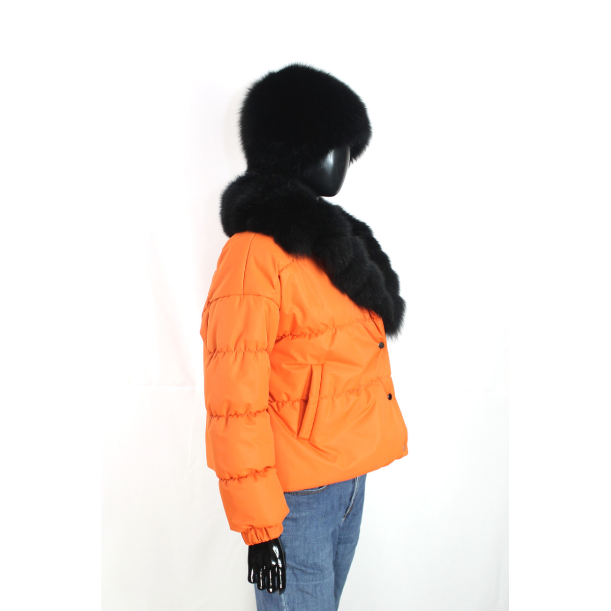 Демісезонна жіноча куртка з хутряним коміром Жовтогарячий, 50