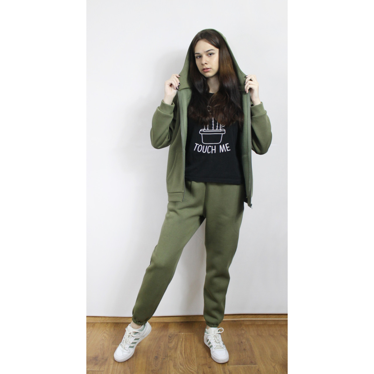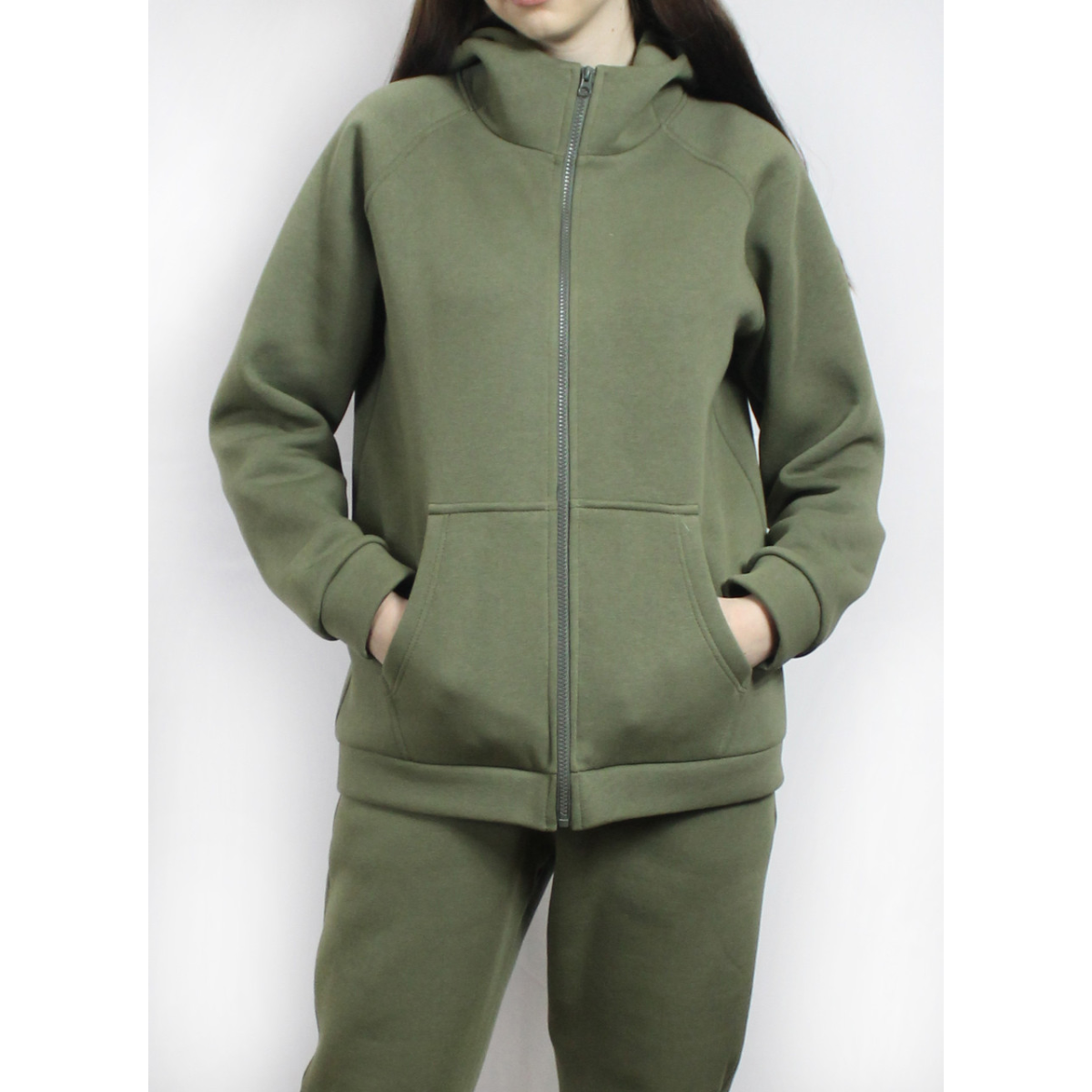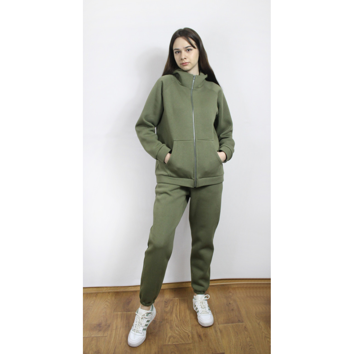 Костюм жіночий теплий спортивний на флісі кофта на змійці Хакі, 46/48