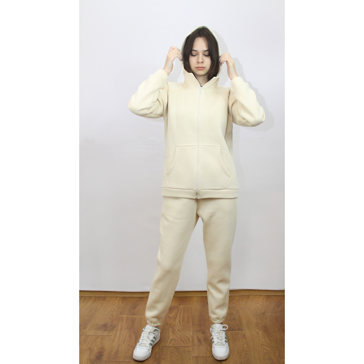Костюм жіночий теплий спортивний на флісі кофта на змійці Молочний, 46/48