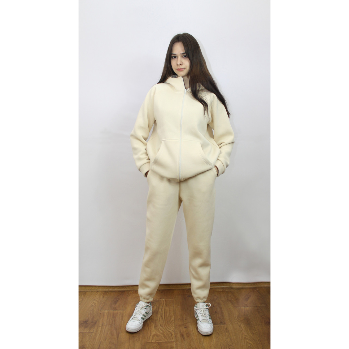 Костюм жіночий теплий спортивний на флісі кофта на змійці Молочний, 50/52