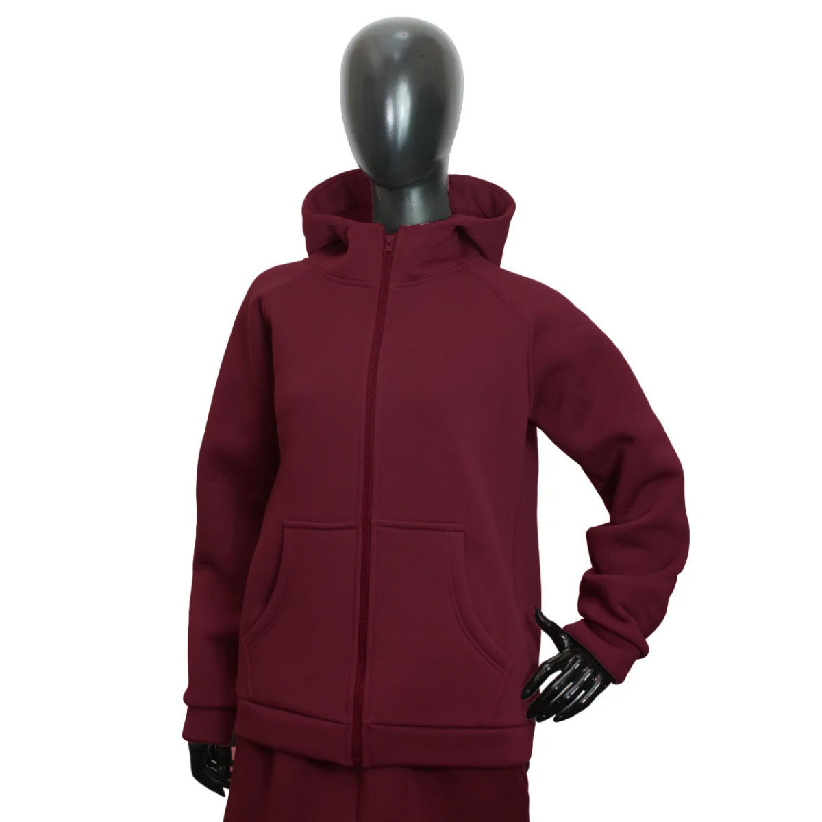 Костюм жіночий теплий спортивний на флісі кофта на змійці Бордо, 50/52