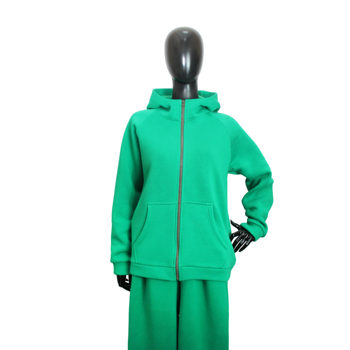 Костюм жіночий теплий спортивний на флісі кофта на змійці Зелений, 42/44