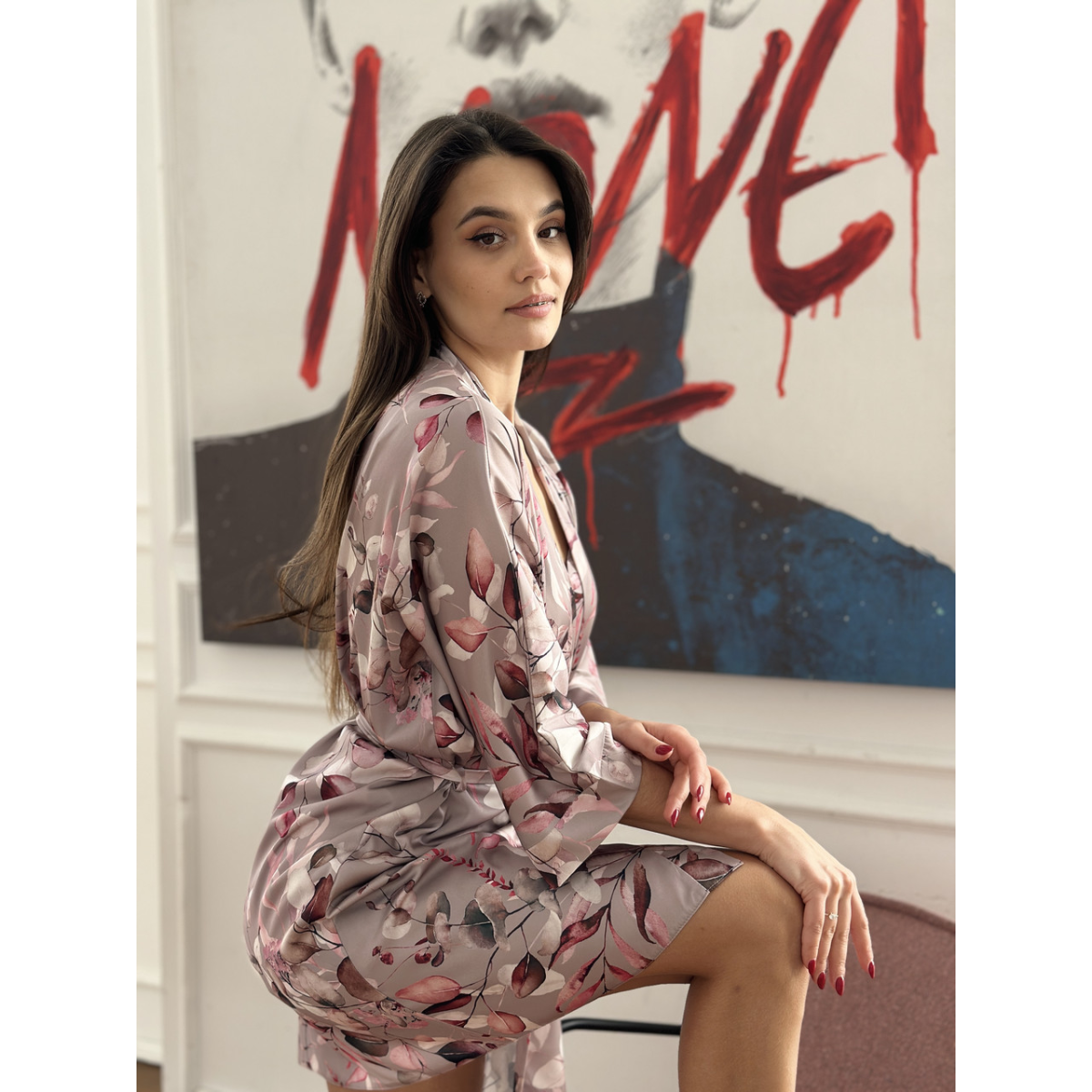 Наш халат виготовлений із шовку Армані - це матеріал преміальної якості, який не тільки красиво струмує, а й підкреслює фігуру, створюючи витончений силует. Легкий благородний блиск надає образу особливого шарму, а стильний принт робить його ще більш виразним.