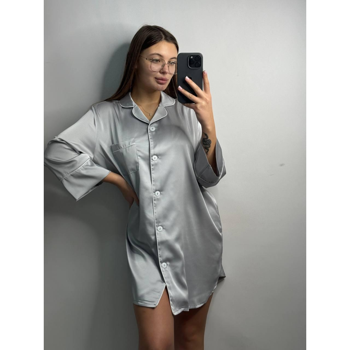 Жіноча нічна сорочка подовжена шовкова. S, Срібний