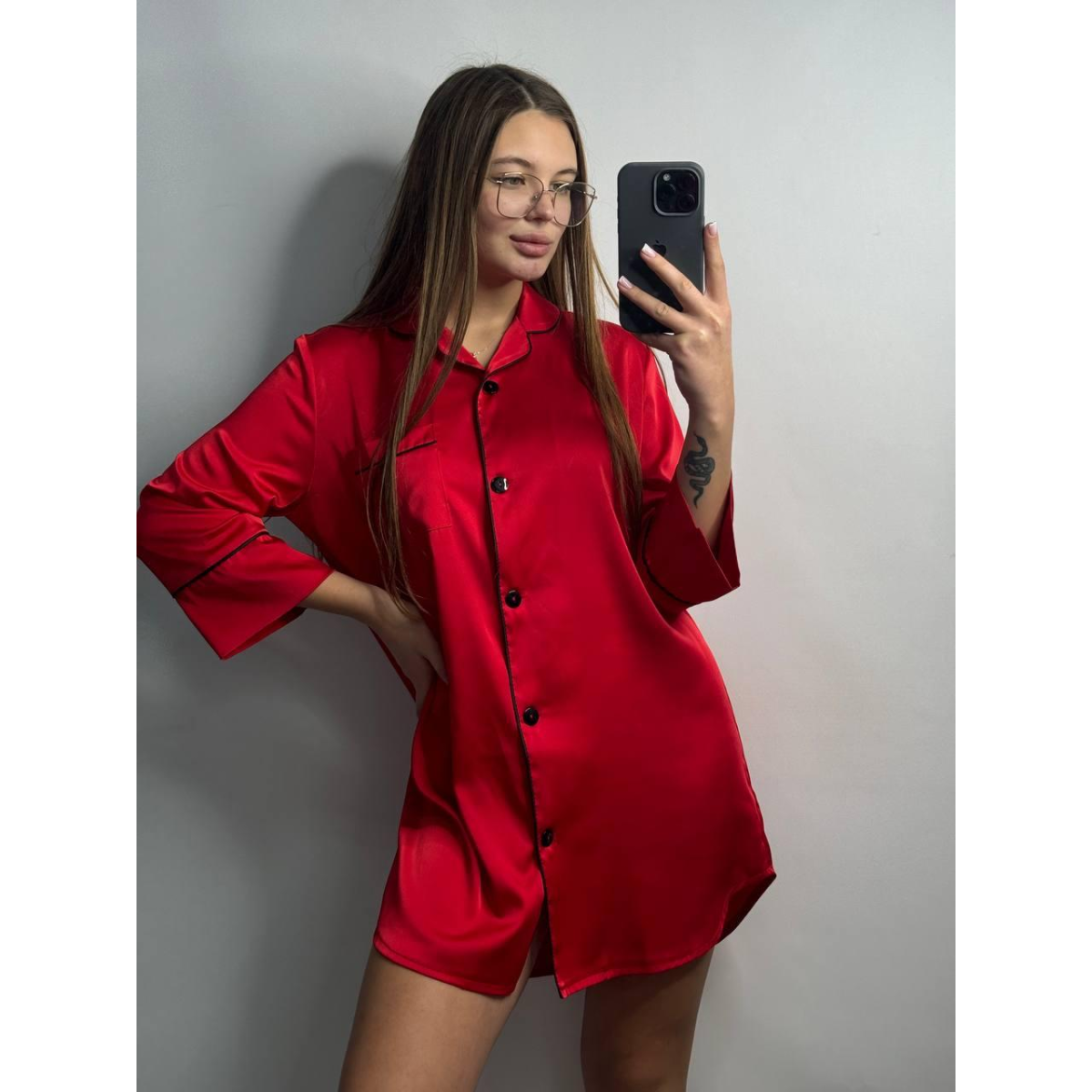 Жіноча нічна сорочка подовжена шовкова. S, Червоний