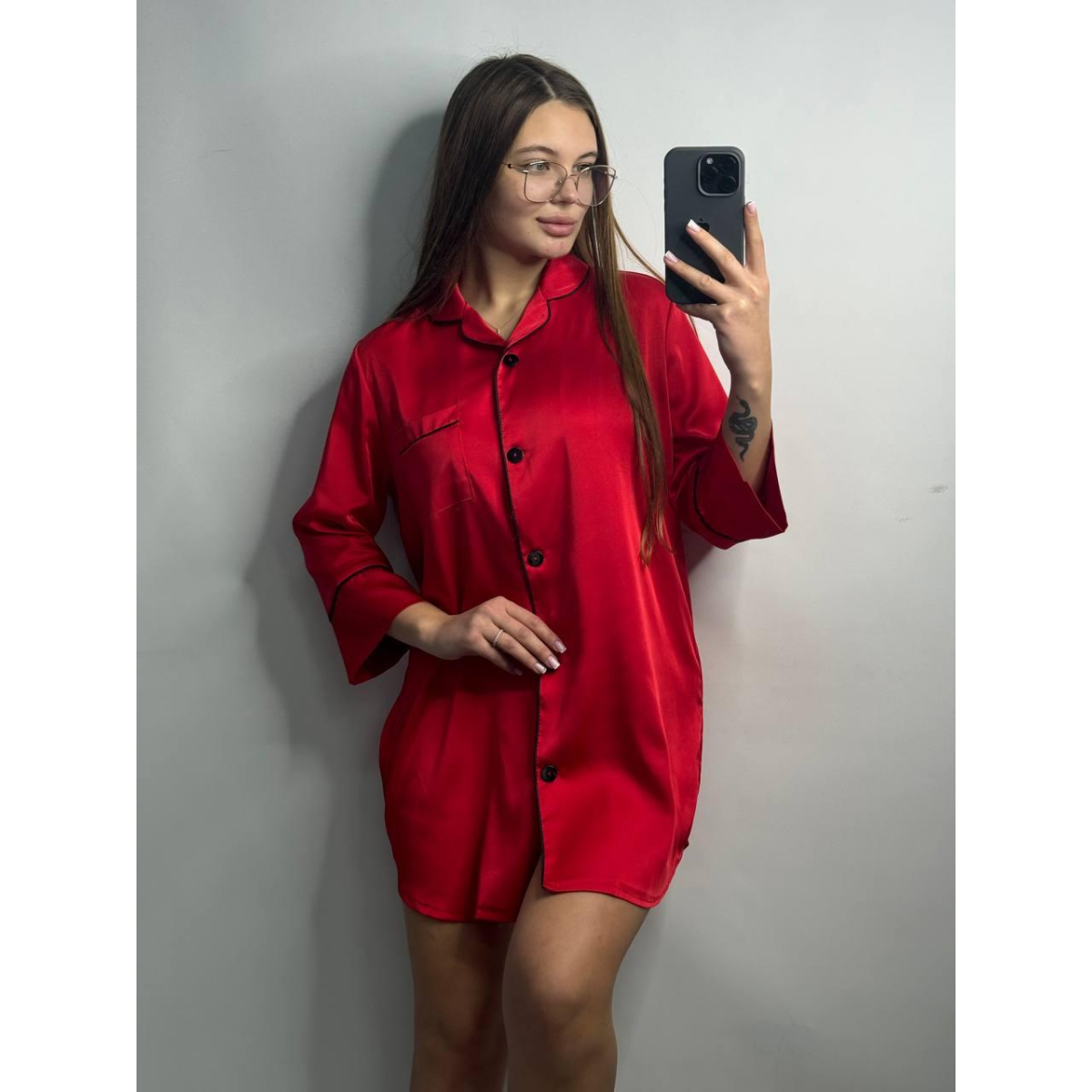Жіноча нічна сорочка подовжена шовкова. L, Червоний