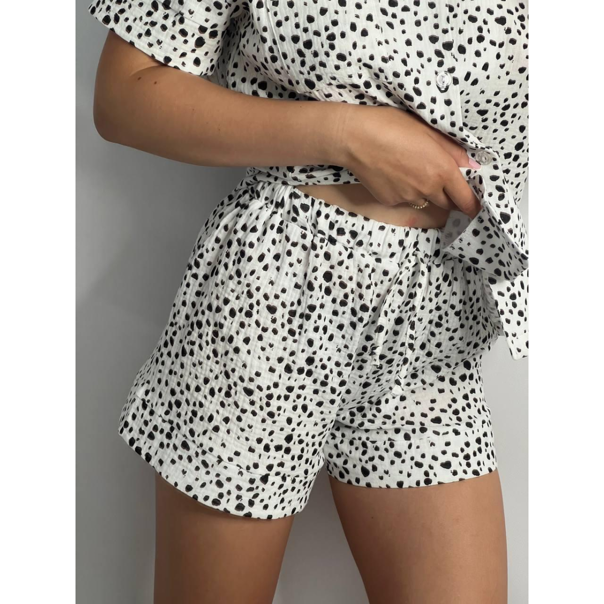 Шорти з натурального мусліну: Наші шорти виготовлені з легкого та дихаючого мусліну, який дозволить вашій шкірі дихати та відчувати себе комфортно у будь-якій ситуації. Зручний пояс із еластичною гумкою забезпечує ідеальну посадку, а вільний крій додає відчуття свіжості та легкості.