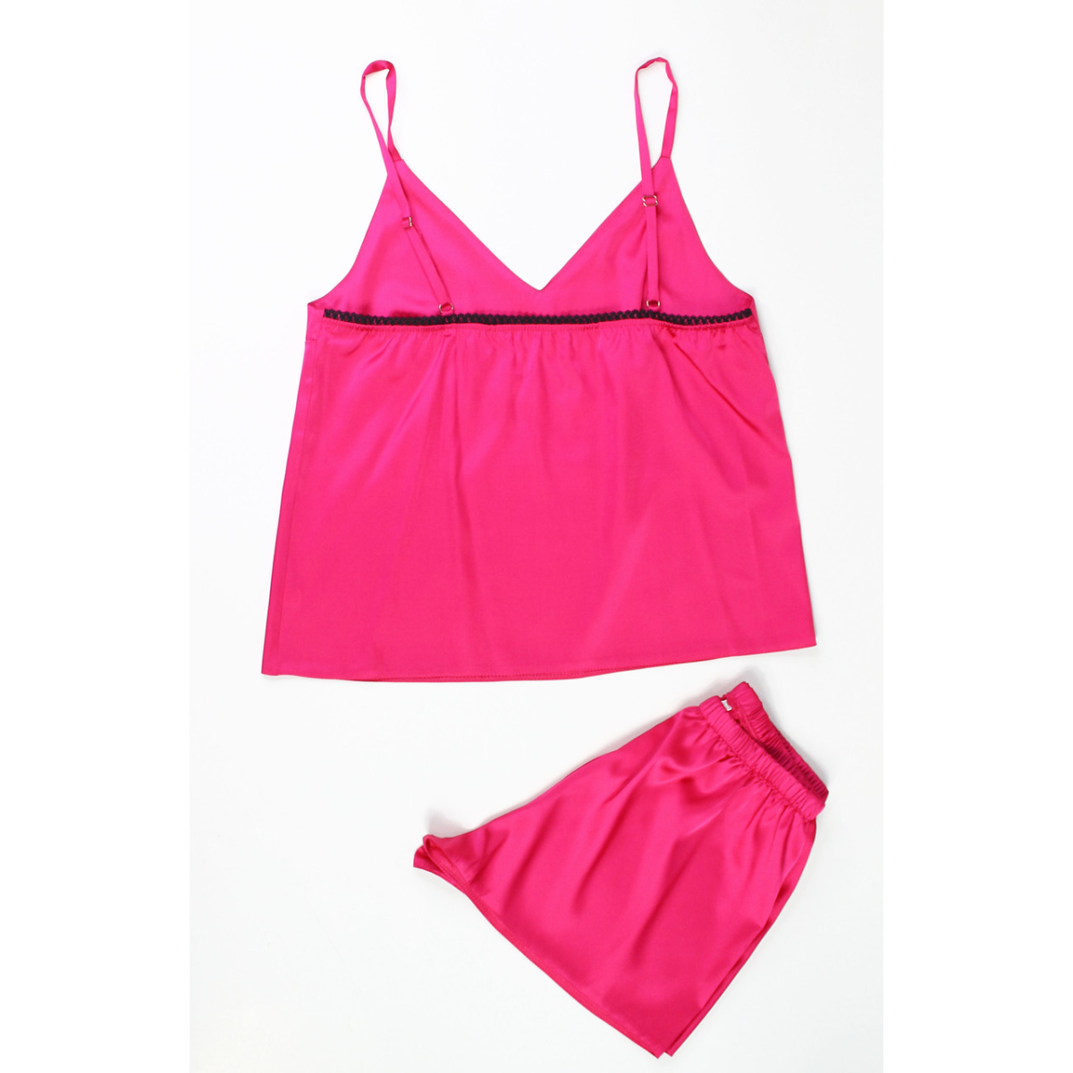 Шорти з того ж штучного шовку: Шорти, що входять до комплекту, також виготовлені з шовковистого матеріалу, забезпечуючи ніжність та комфорт навіть у спекотну ніч. Вони ідеально поєднуються із майкою, створюючи завершений образ для вашого сну.