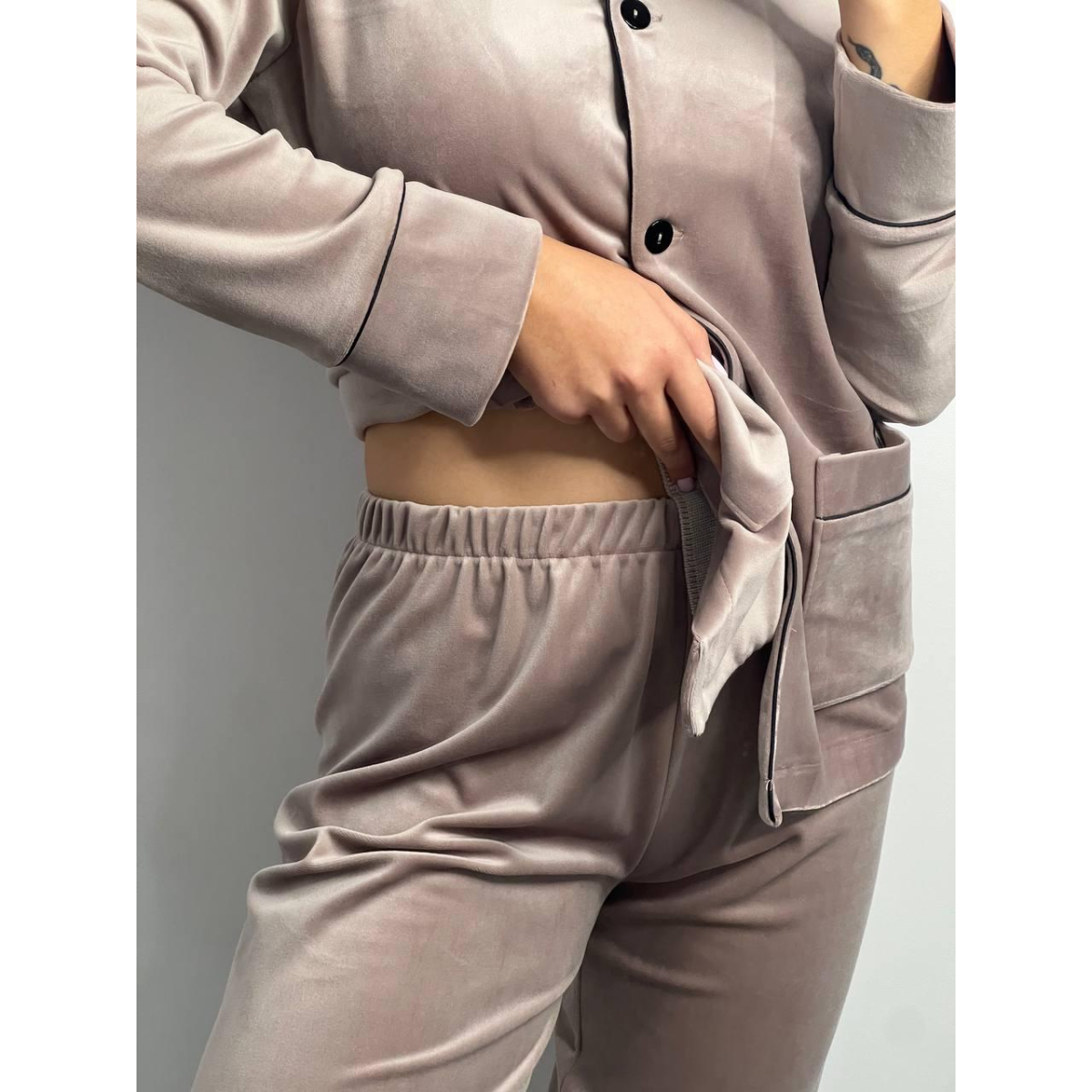 Костюм з плюшевого велюру на ґудзиках із двома кишенями. XL, Мокко