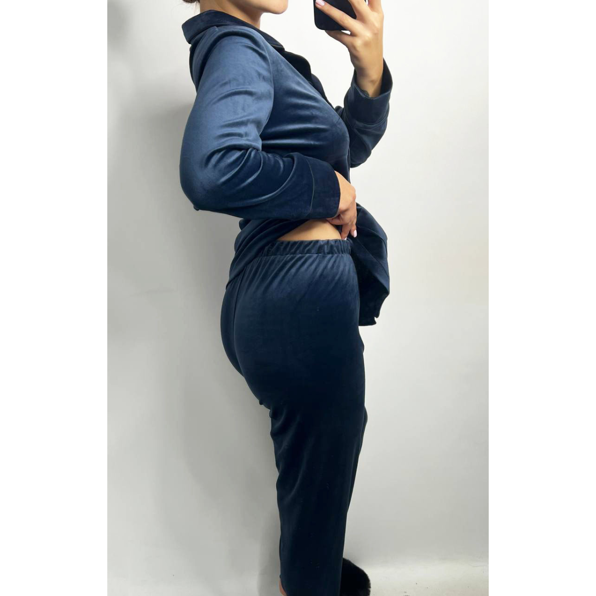 Костюм з плюшевого велюру на ґудзиках із двома кишенями. XS, Синій