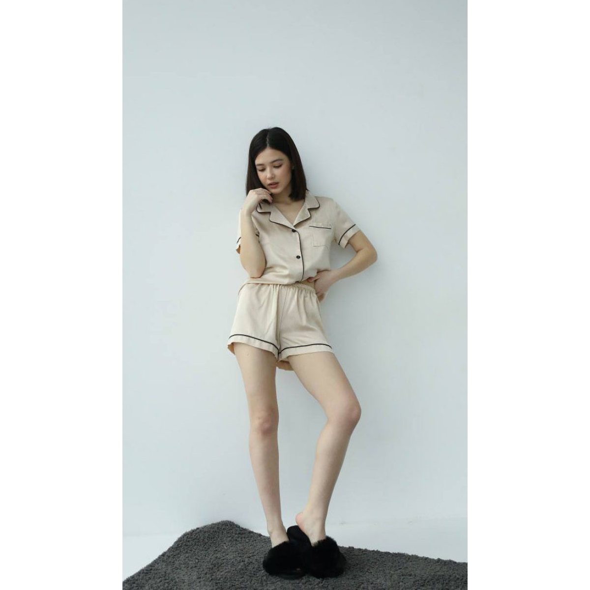 Виберіть комплект із шортів і сорочки на гудзиках із тканини шовк Армані та насолоджуйтесь розкішшю та комфортом щодня.
