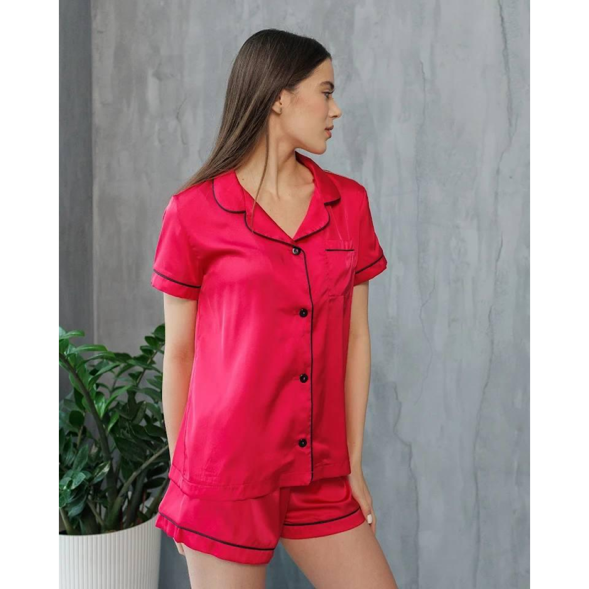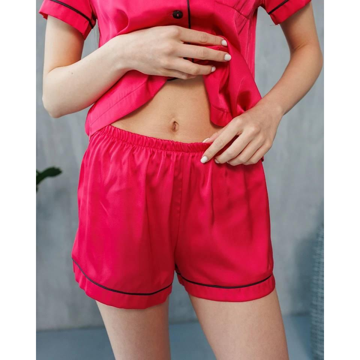 Виберіть комплект із шортів і сорочки на гудзиках із тканини шовк Армані та насолоджуйтесь розкішшю та комфортом щодня.