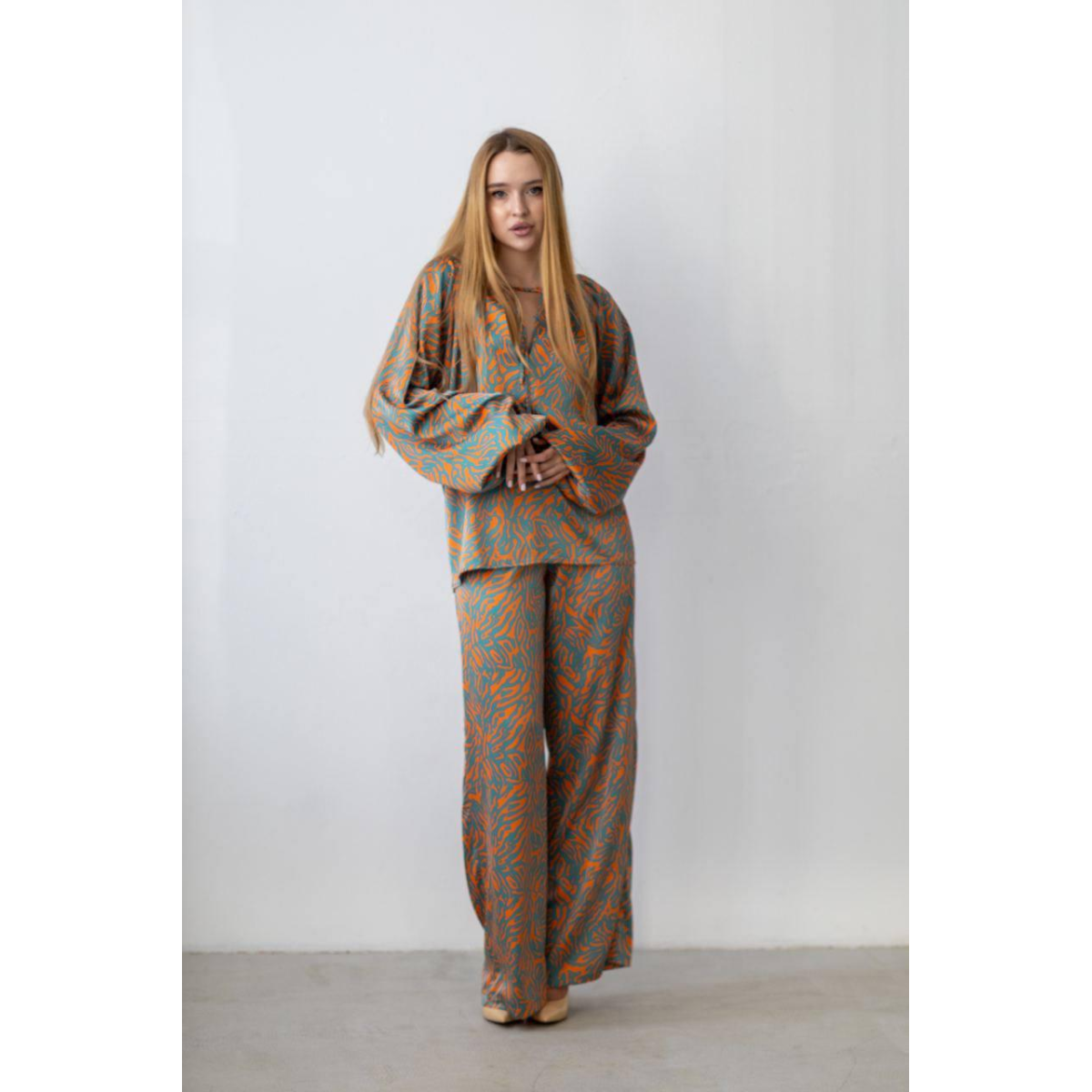 Жіночий костюм із шовку Армані: блуза з довгим рукавом-фонариком та брюки-кльош — елегантність і стиль в одному комплекті
