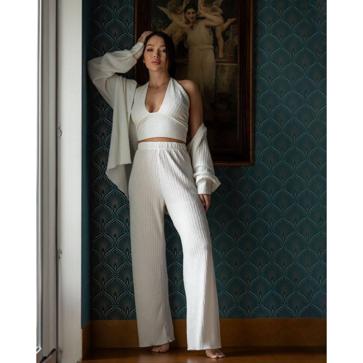 Створіть ідеальний літній образ разом із жіночим костюмом-трійкою з легкої віскози жатки. Натуральна дихаюча тканина приємна до тіла та ідеально підходить для спекотної погоди.