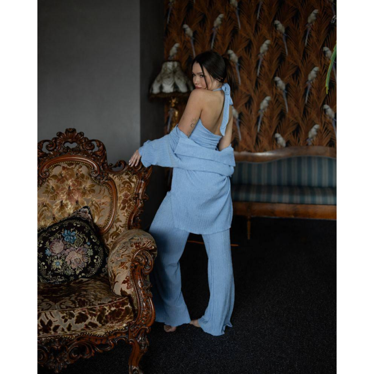 Виконаний з віскози жатки — легкої, дихаючої, приємної до тіла тканини