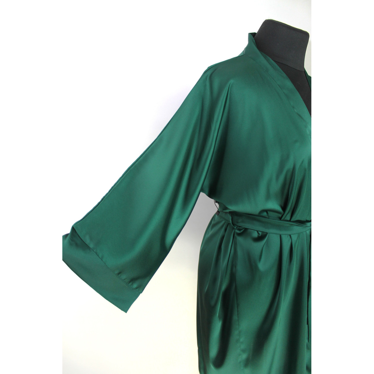 Халат жіночий шовковий під пояс довжина 90см Зелений M/L