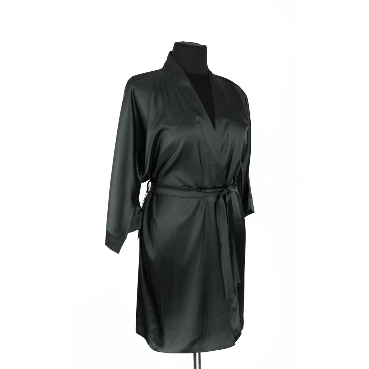 Халат жіночий шовковий під пояс довжина 90см Чорний, XL/2XL