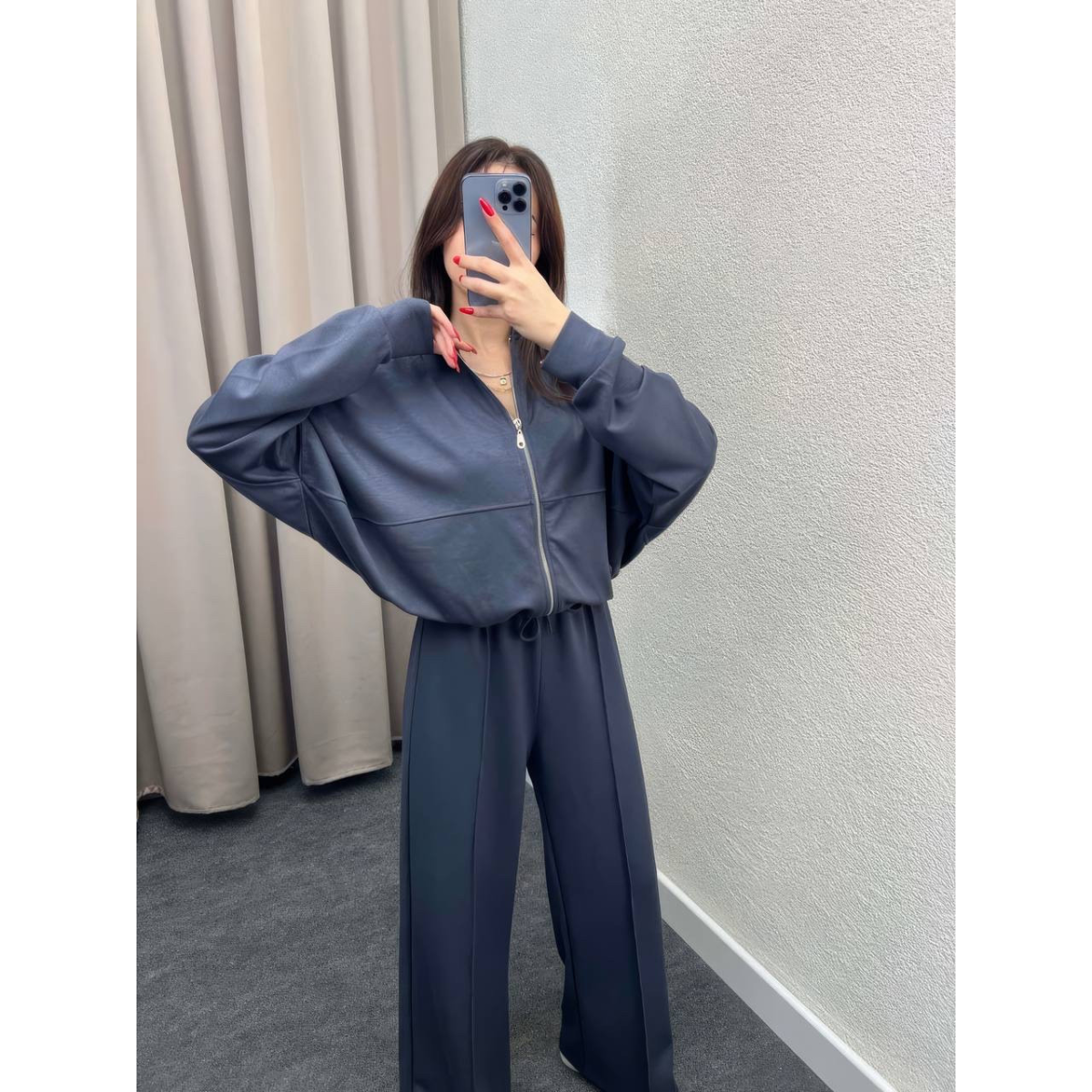 Жіночий костюм-двійка з широкими штанами Графіт 46/48