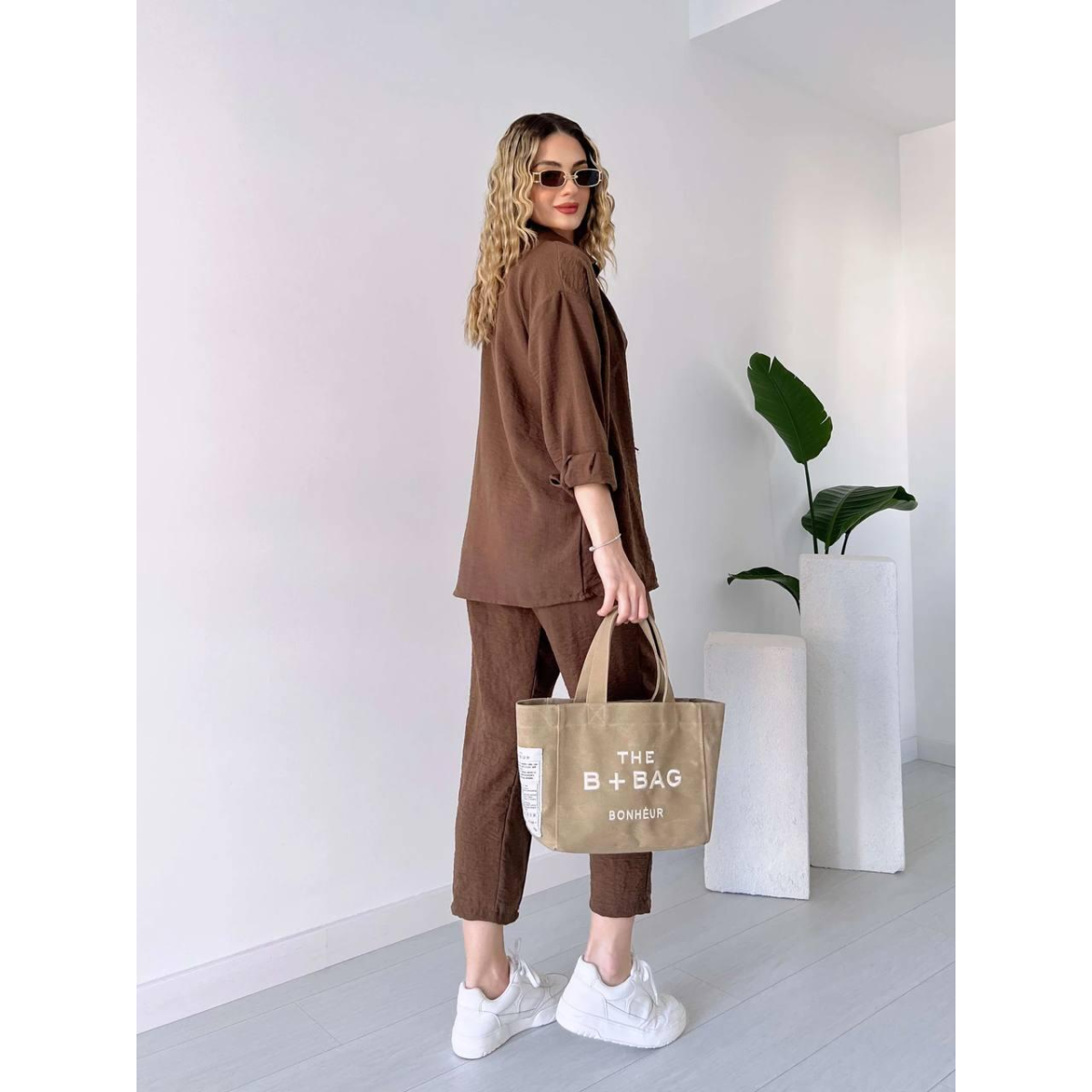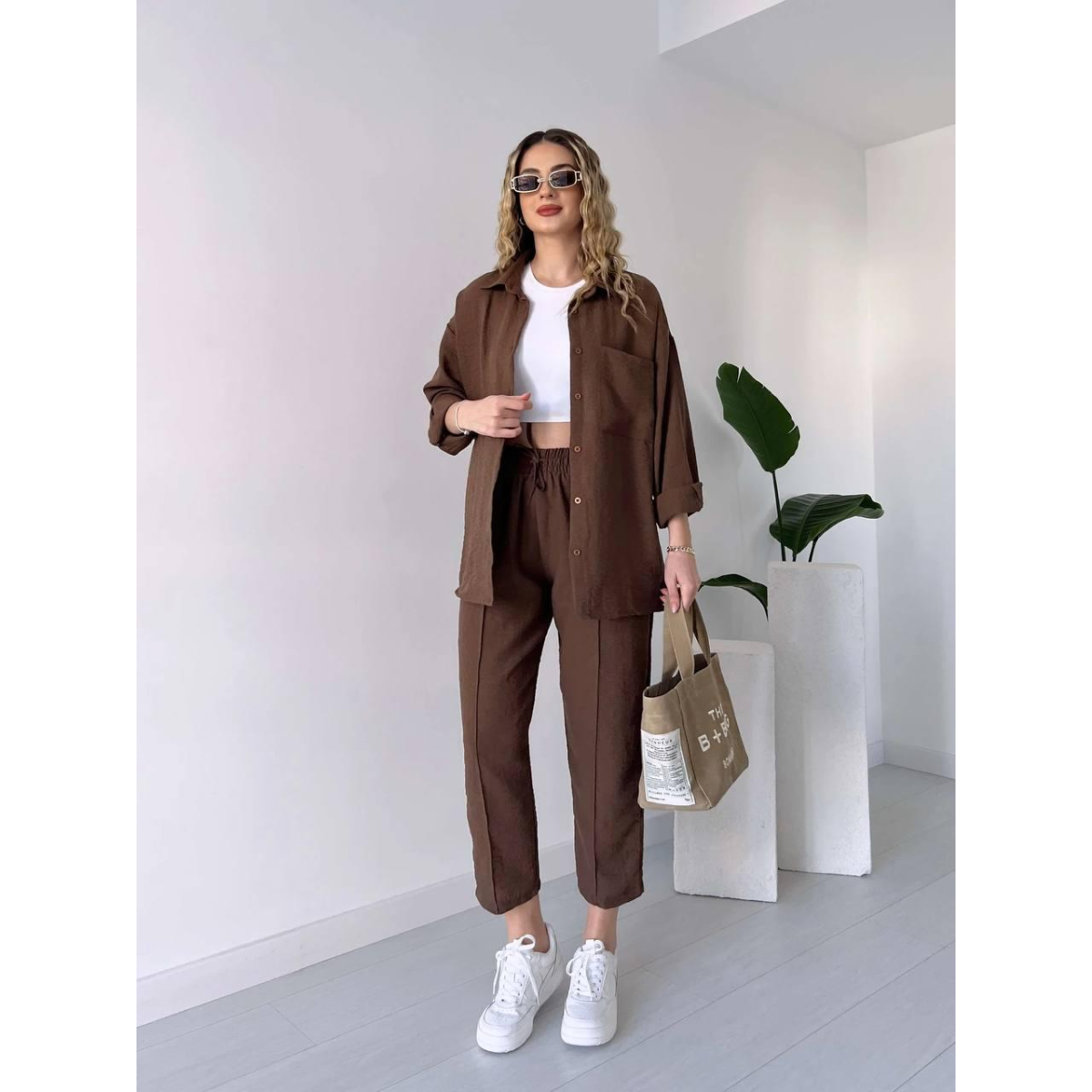 Жіночий літній костюм - чудовий вибір для стильних та комфортних образів у спекотні дні. Він складається з сорочки вільного крою та штанів, створених для легкості та зручності.