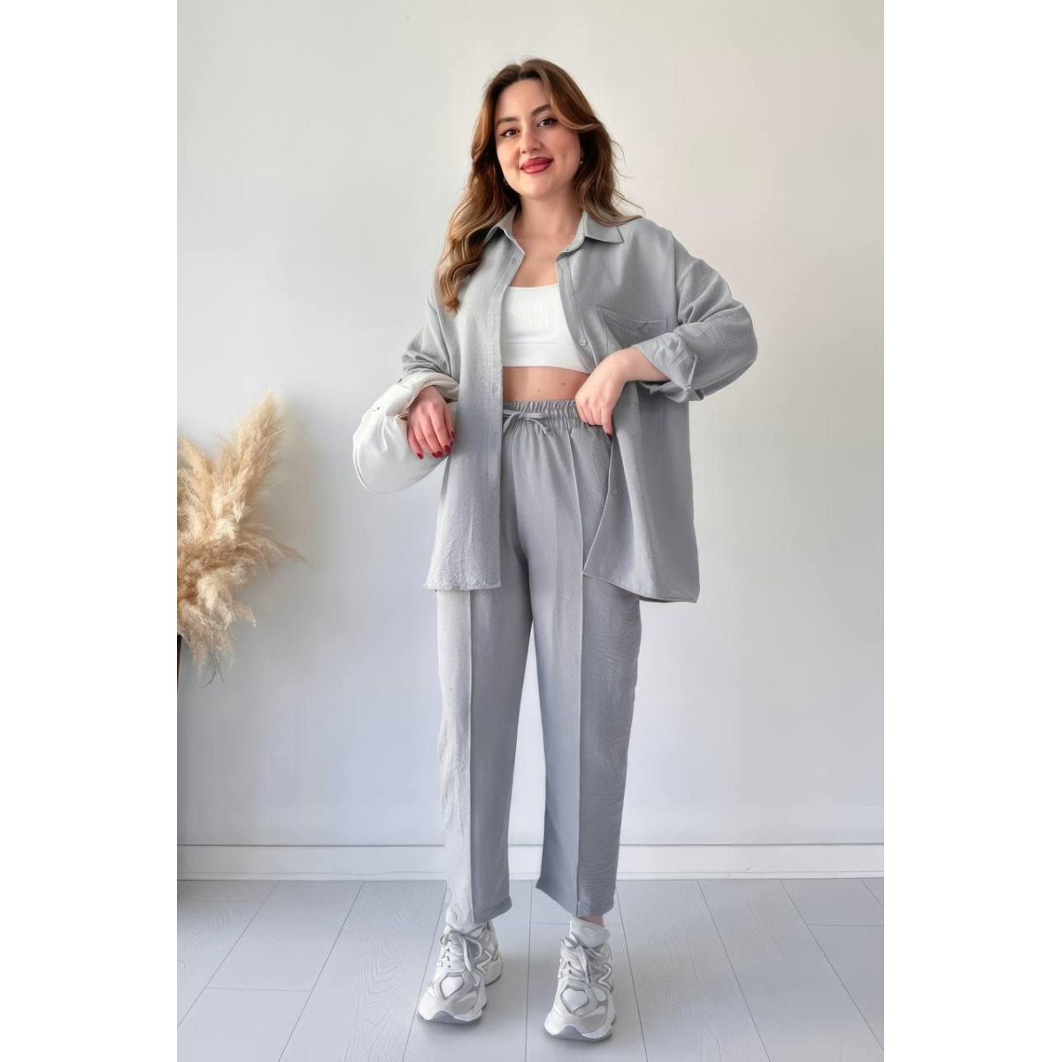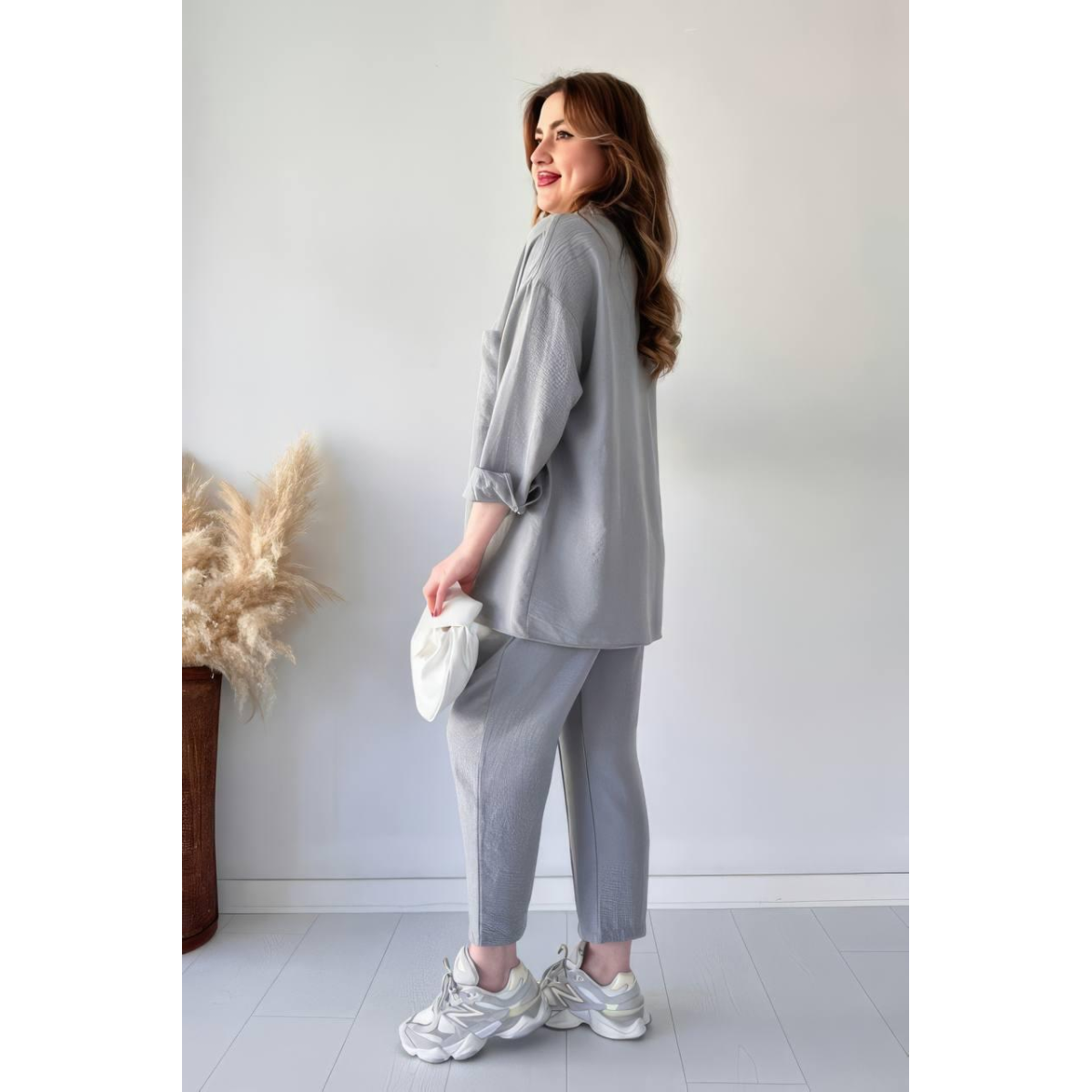 Жіночий літній костюм - чудовий вибір для стильних та комфортних образів у спекотні дні. Він складається з сорочки вільного крою та штанів, створених для легкості та зручності.