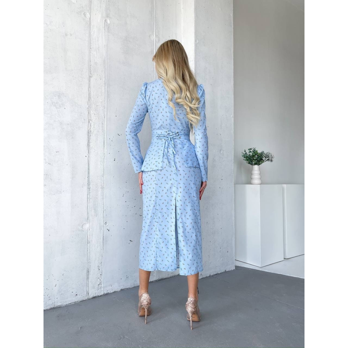 Однак, наша унікальна особливість - у басці, яка є справжньою родзинкою цієї сукні. Баска може бути зав“язана як спереду, так і ззаду (або взагалі не використовуватися), що додає образу динамічності та грайливості, дозволяючи вам експериментувати з вашим стилем.