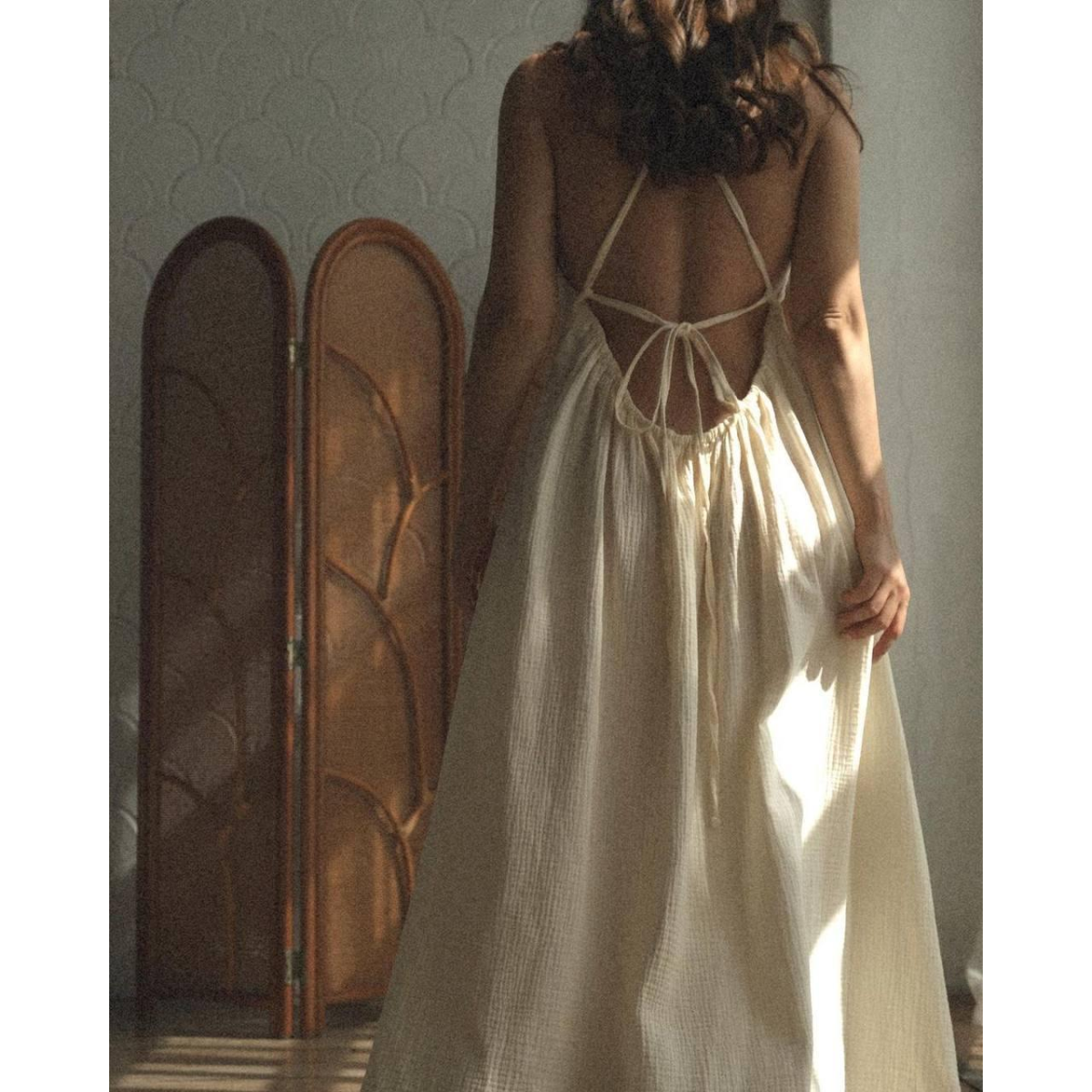Дайте своєму літньому гардеробу повітряний шик із нашим елегантним сарафаном із мусліну з відкритою спиною. Ця сукня ідеально підкреслить вашу жіночність і привнесе свіжість та легкість у кожен ваш образ.