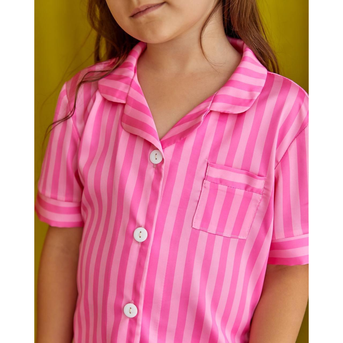 Дитяча піжамка із сатину шорти з сорочкою, Рожева смужка, 154-158