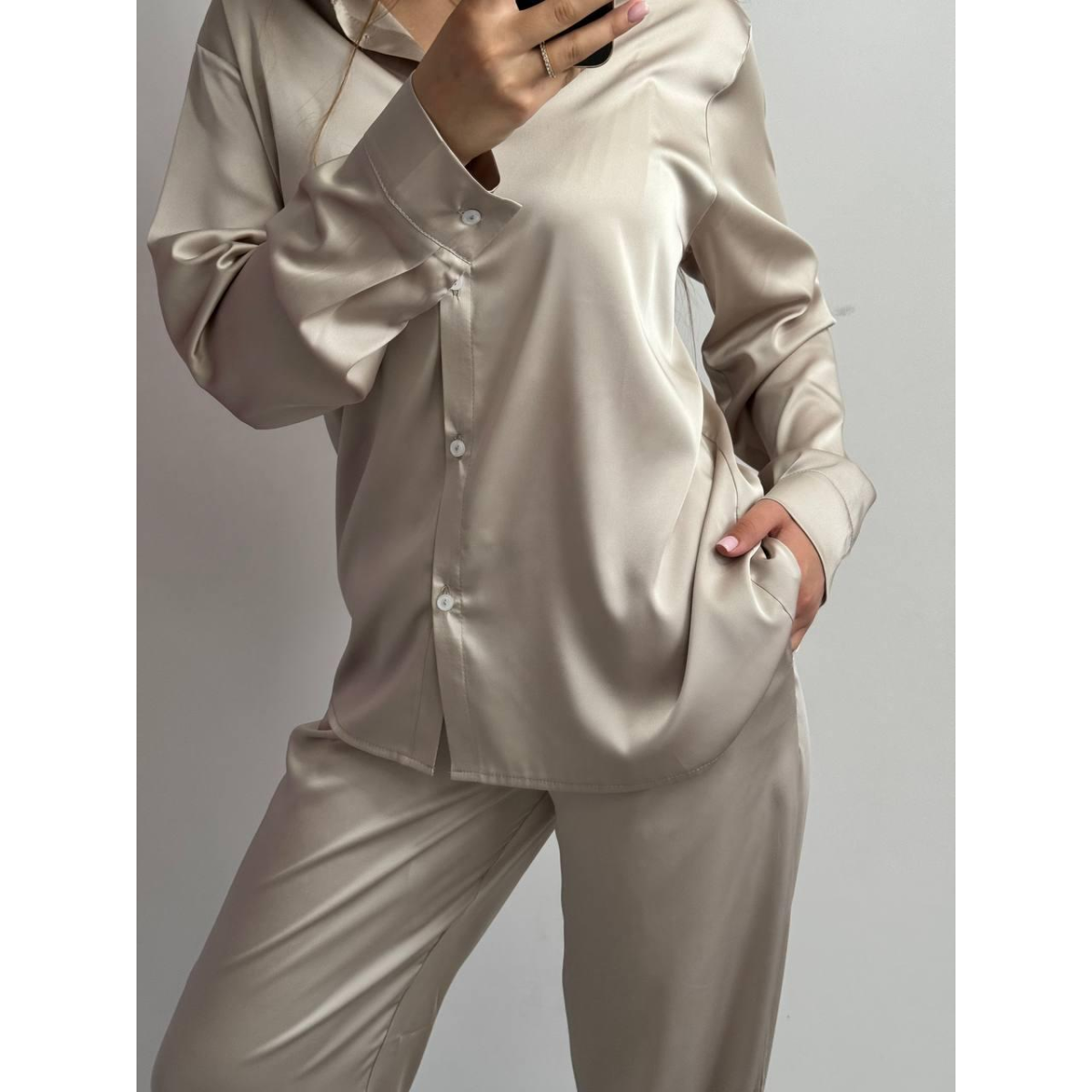Цей костюм стане вашим надійним супутником як у повсякденних турботах, так і на особливих заходах, дозволяючи вам почуватися впевнено та стильно у будь-якій ситуації. Відчуйте справжній шик та розкіш з нашим жіночим шовковим костюмом Oversize зараз!