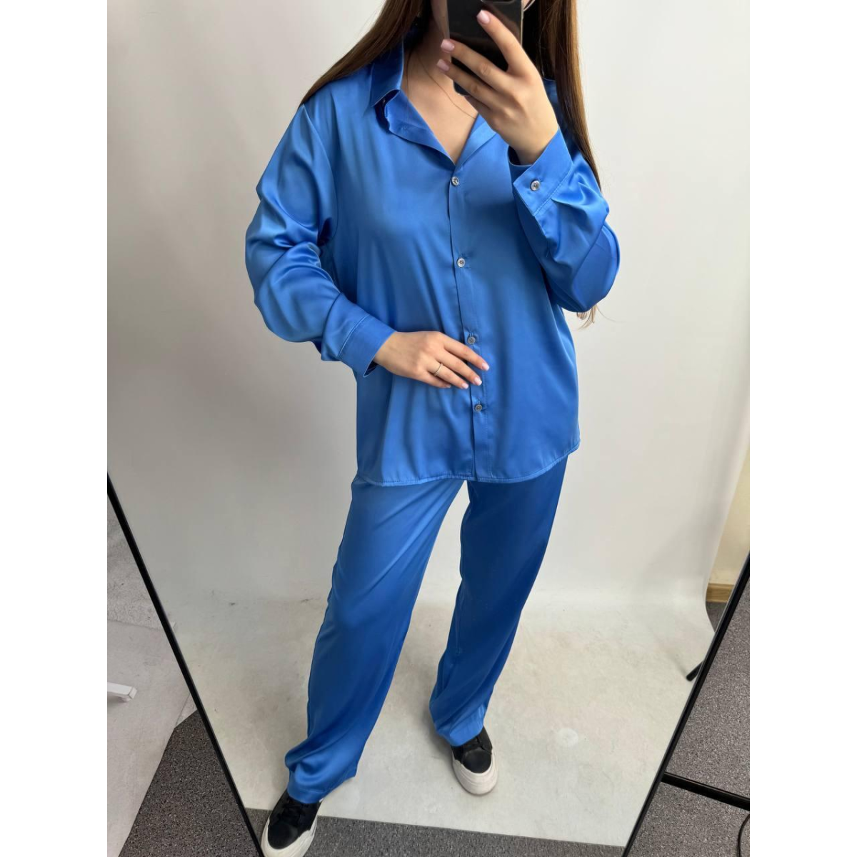 Цей костюм стане вашим надійним супутником як у повсякденних турботах, так і на особливих заходах, дозволяючи вам почуватися впевнено та стильно у будь-якій ситуації. Відчуйте справжній шик та розкіш з нашим жіночим шовковим костюмом Oversize зараз!