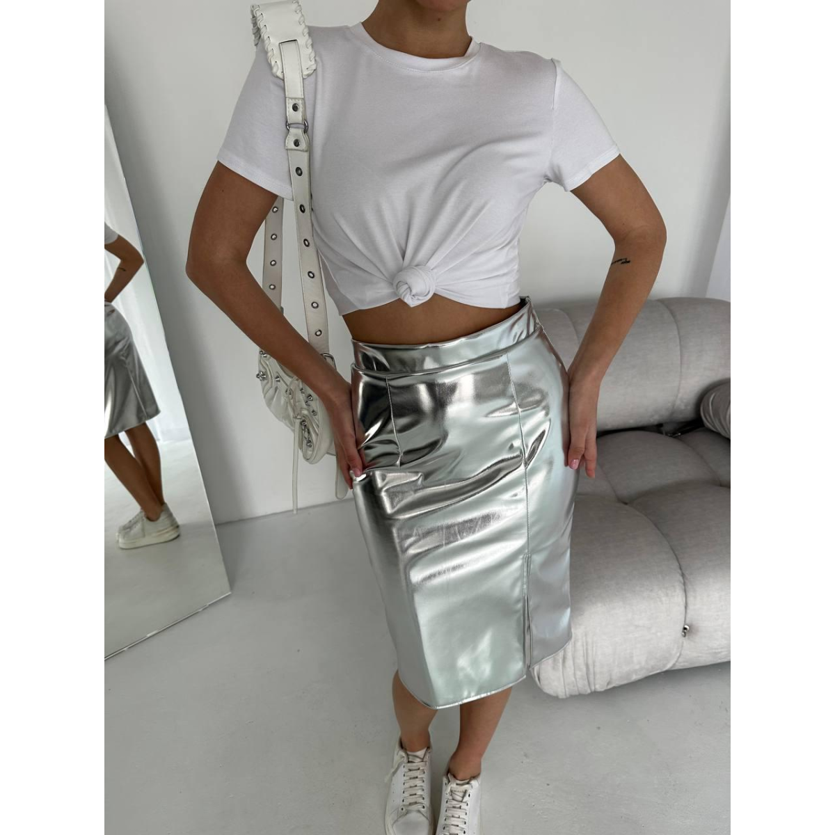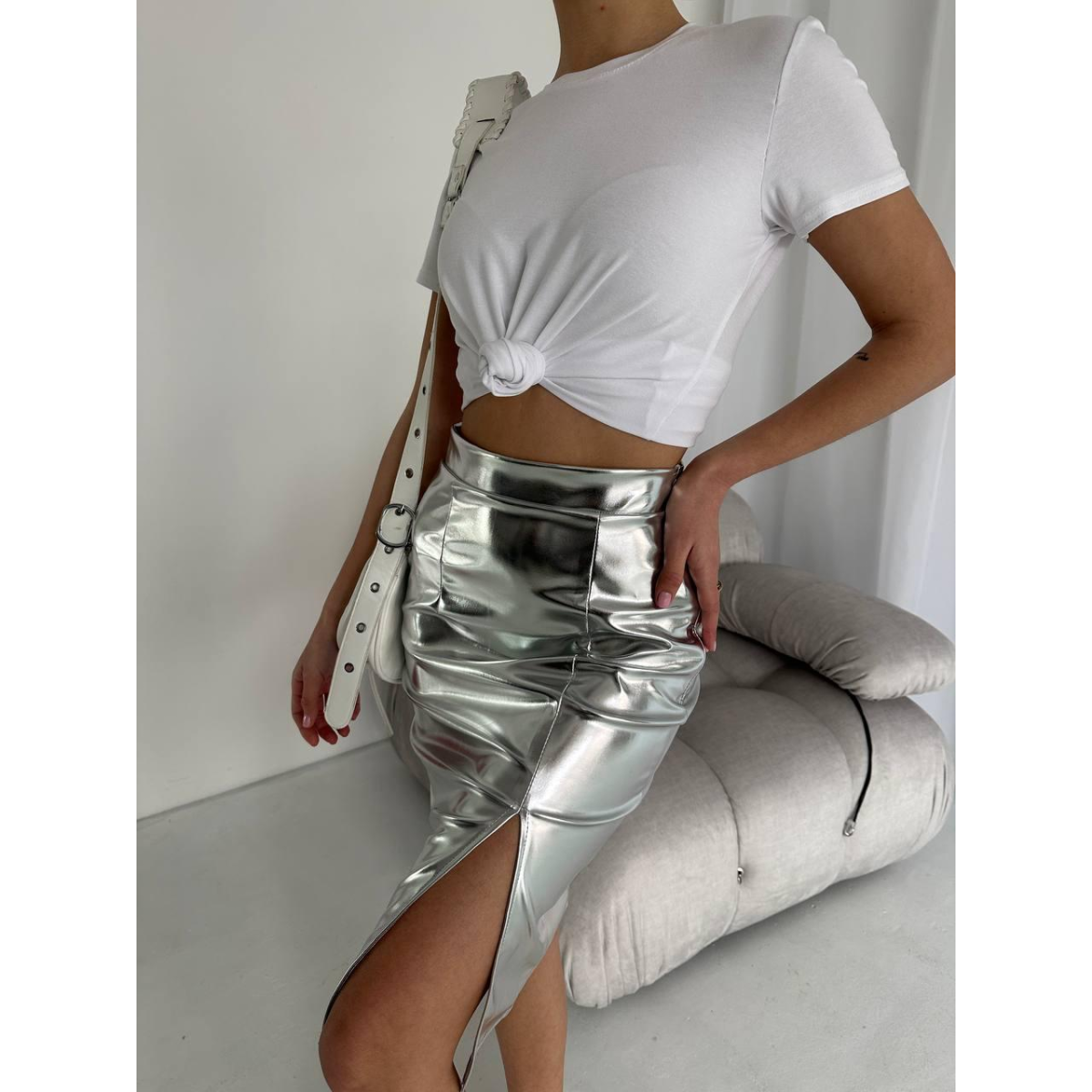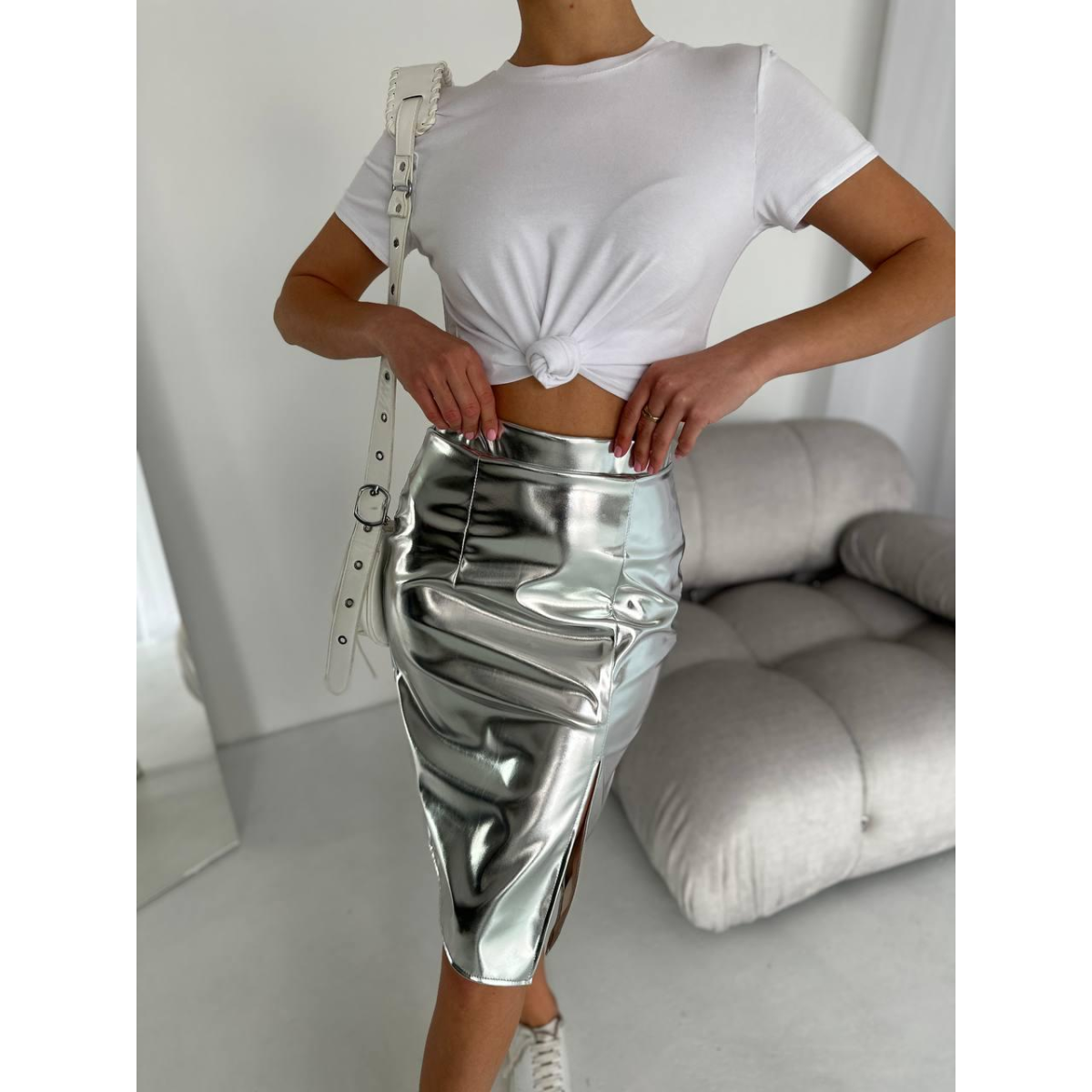 Втілить свої найсміливіші модні фантазії з нашою спідницею-олівцем з еко-шкіри, яка привносить у ваш образ металевий тренд та жіночну вишуканість. Ця спідниця стане незамінним елементом вашого гардеробу, додаючи стиль та елегантність у кожному вашому кроці.