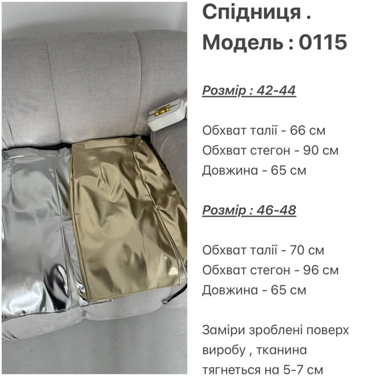 Втілить свої найсміливіші модні фантазії з нашою спідницею-олівцем з еко-шкіри, яка привносить у ваш образ металевий тренд та жіночну вишуканість. Ця спідниця стане незамінним елементом вашого гардеробу, додаючи стиль та елегантність у кожному вашому кроці.