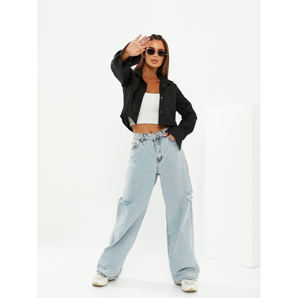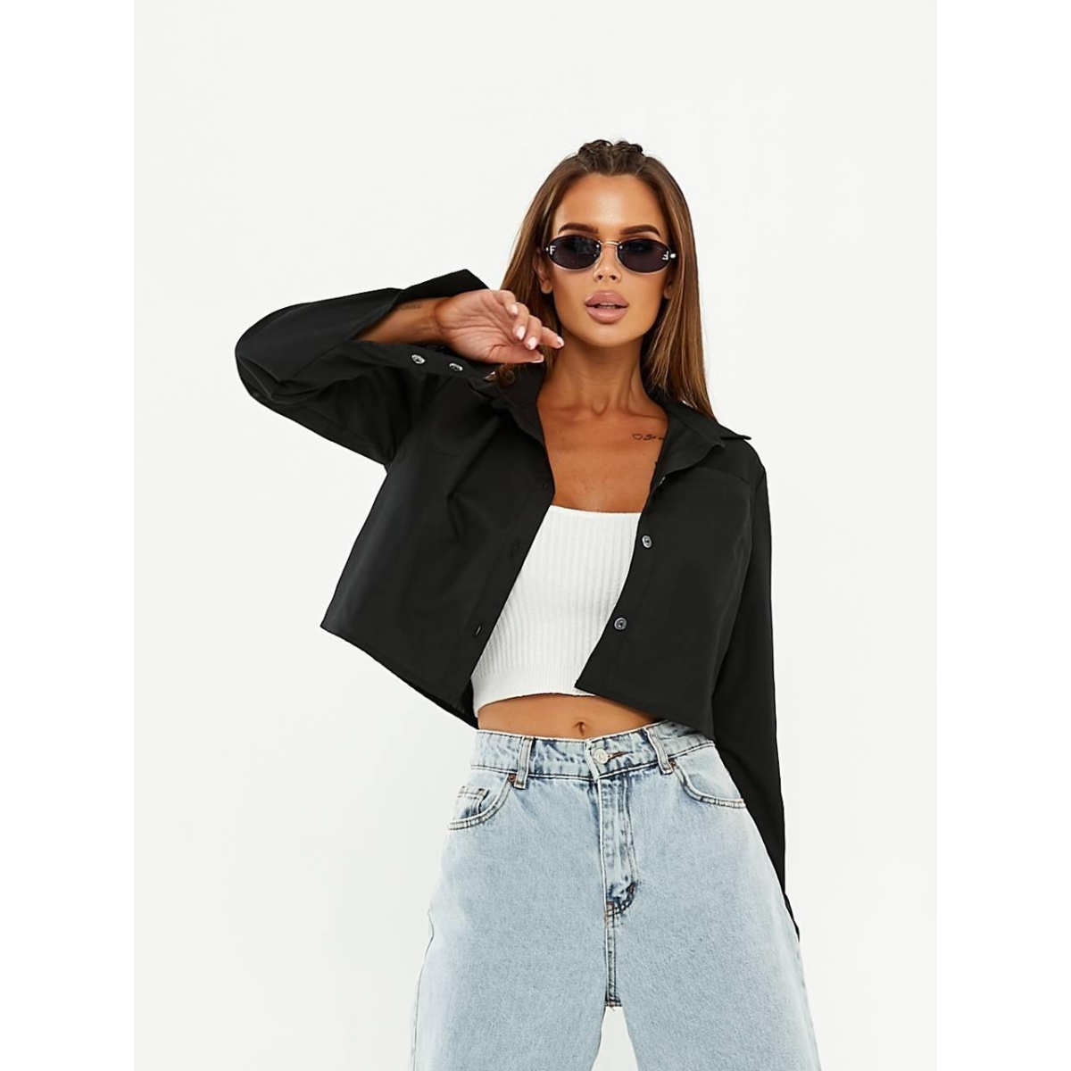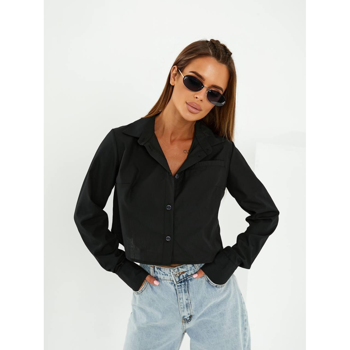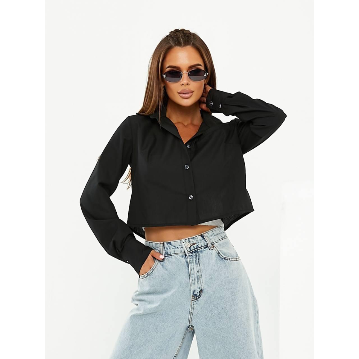 Привнесіть свіжість та елегантність у свій гардероб з нашою укороченою сорочкою зі 100% натуральної бавовни. Ця сорочка поєднує у собі класичний дизайн з оригінальними деталями, роблячи її ідеальним вибором для стильних та впевнених у собі жінок.