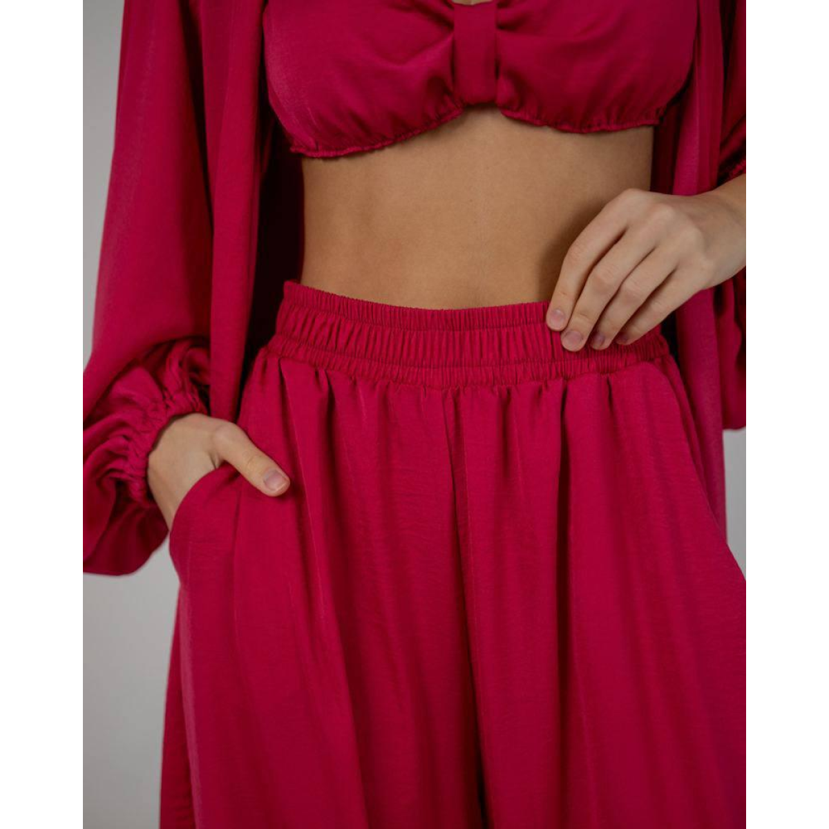 Широкі штани завершують образ, забезпечуючи абсолютну свободу руху та комфорт. Їх елегантний крій створює ідеальний баланс між стилем та практичністю, роблячи їх ідеальним вибором для розслаблених моментів затишку.