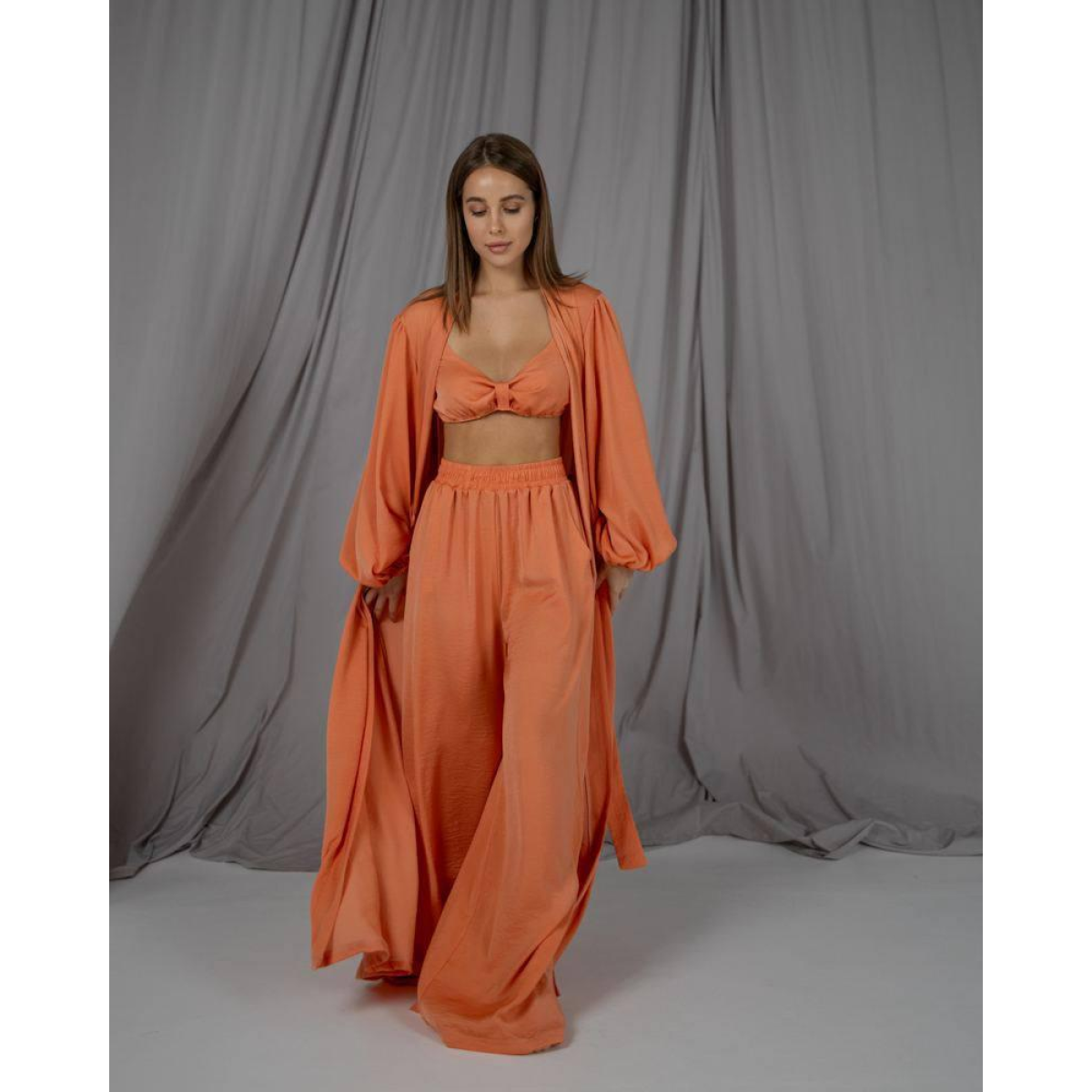 Широкі штани завершують образ, забезпечуючи абсолютну свободу руху та комфорт. Їх елегантний крій створює ідеальний баланс між стилем та практичністю, роблячи їх ідеальним вибором для розслаблених моментів затишку.