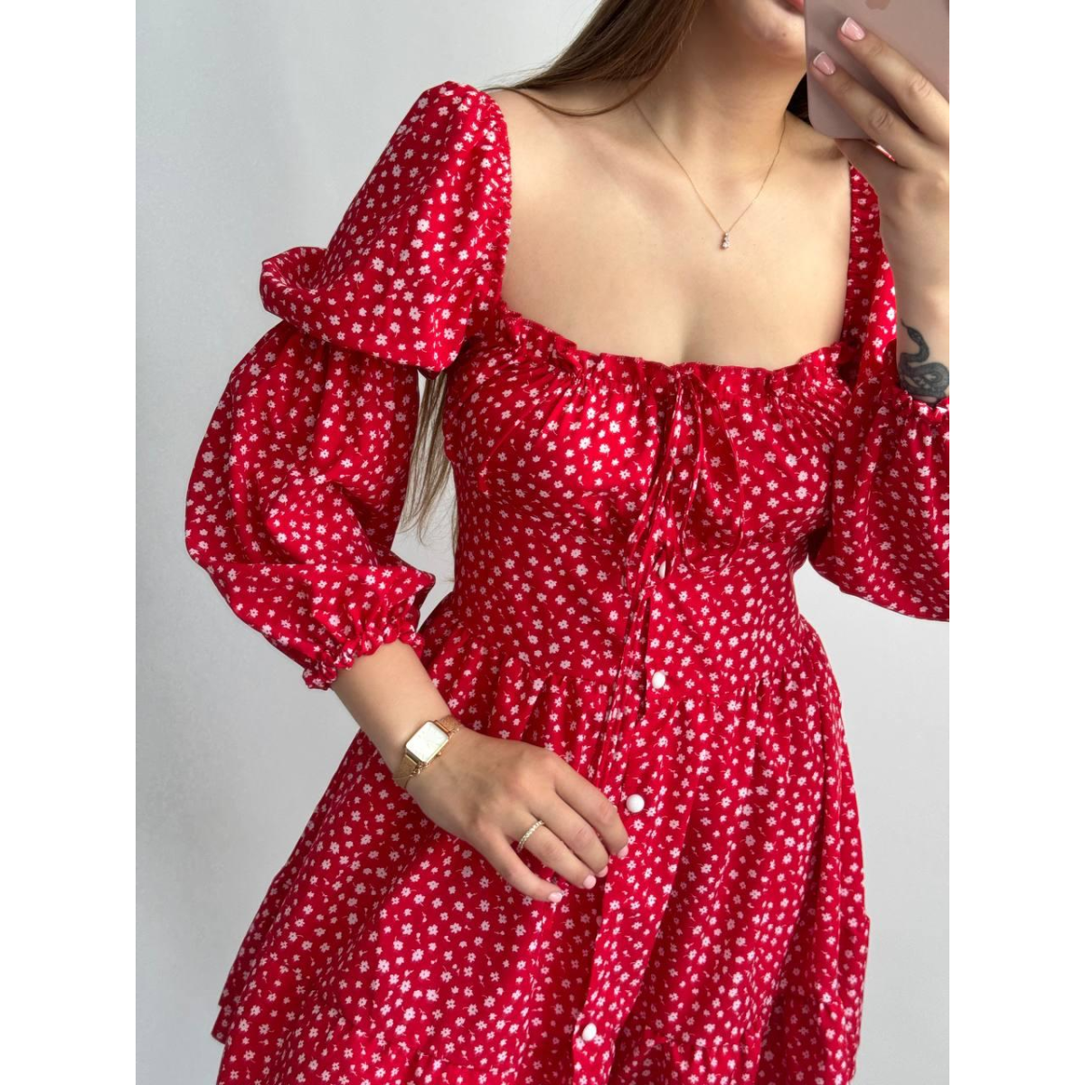 Жіноче софтове плаття на ґудзиках із довгим рукавом. Червоний, Квітковий принт, M-L
