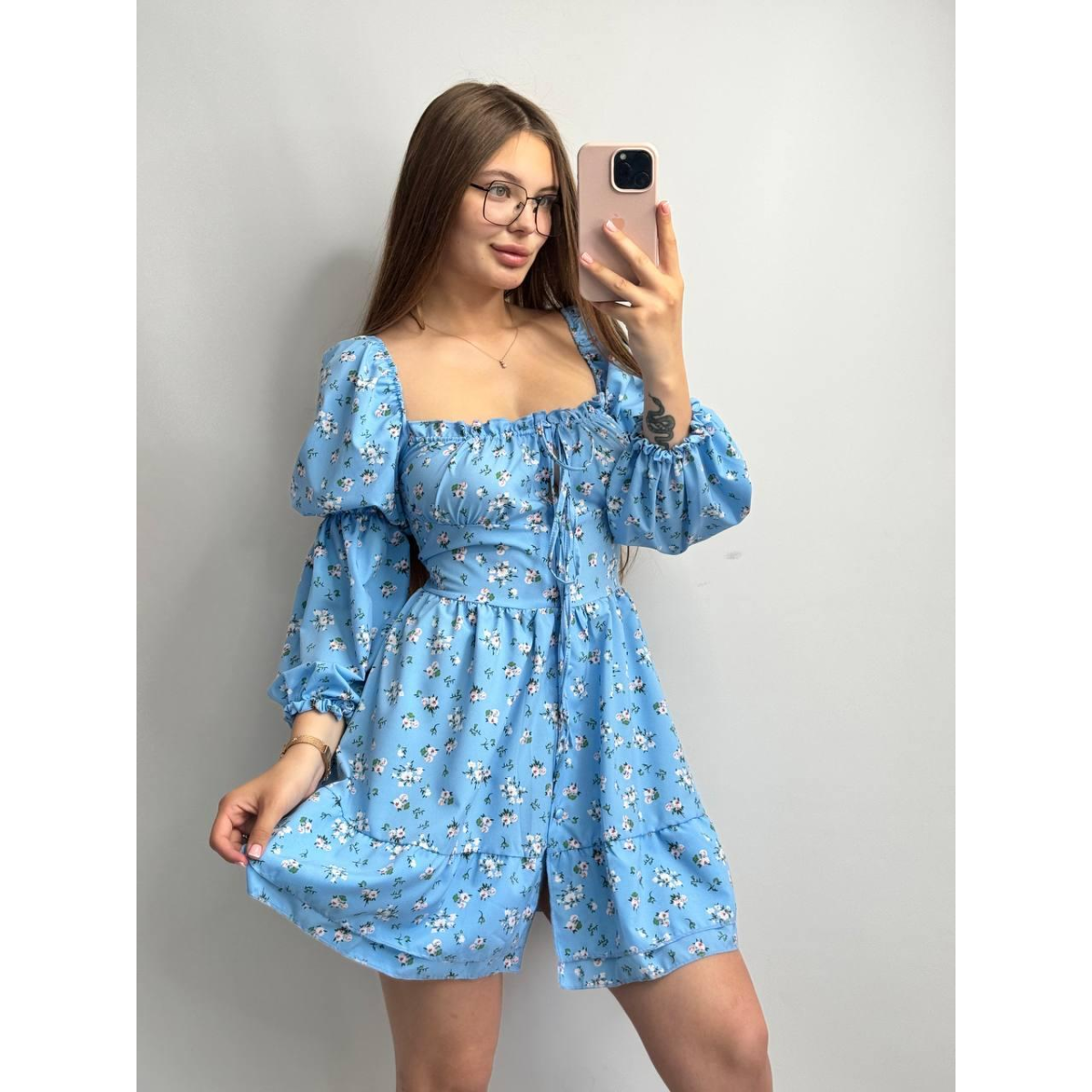 Жіноче софтове плаття на ґудзиках із довгим рукавом. Блакитний, Квітковий принт, M-L