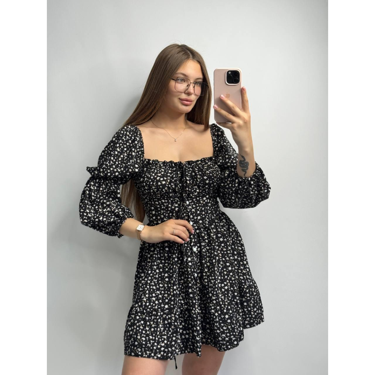Жіноче софтове плаття на ґудзиках із довгим рукавом. Чорний, Квітковий принт, XS-S