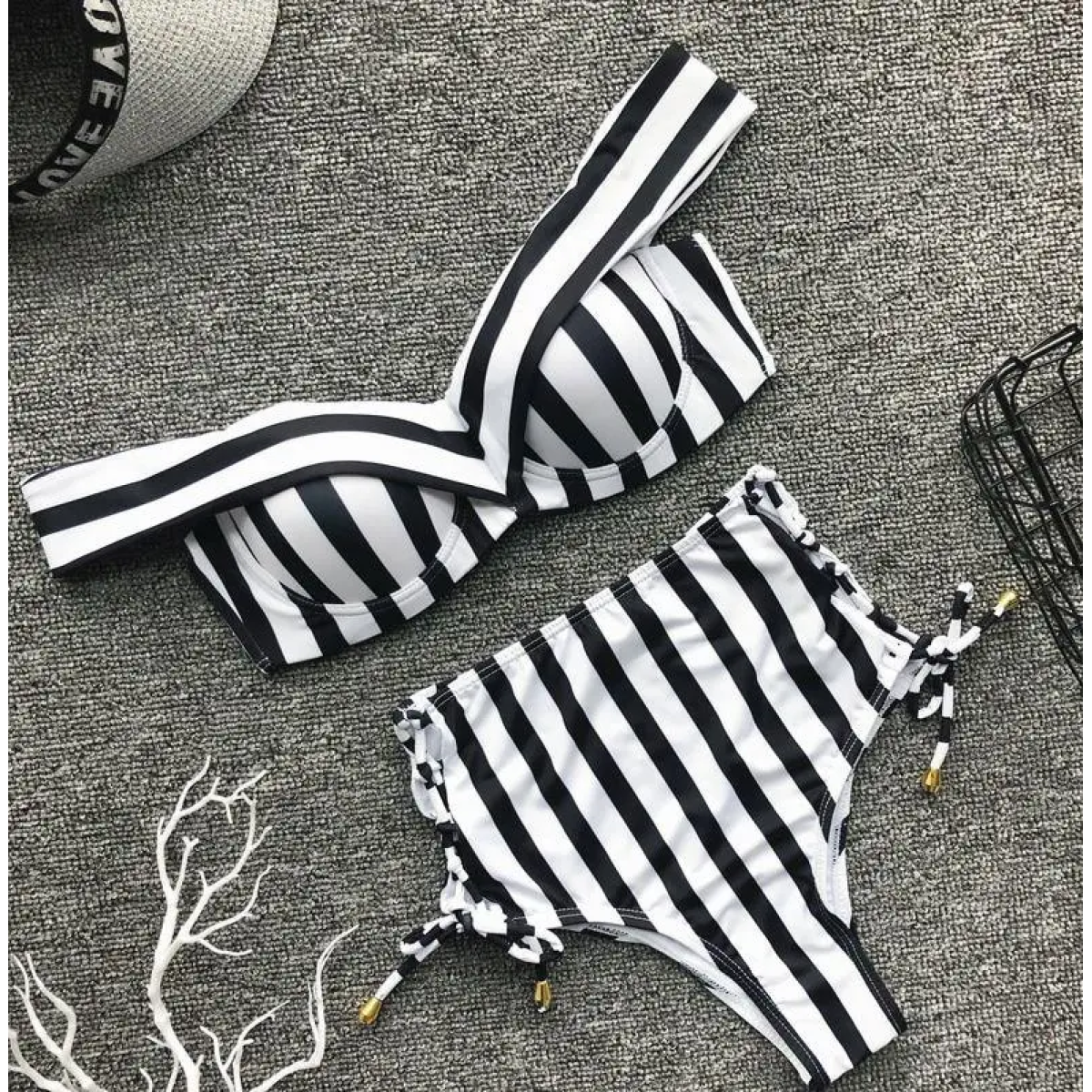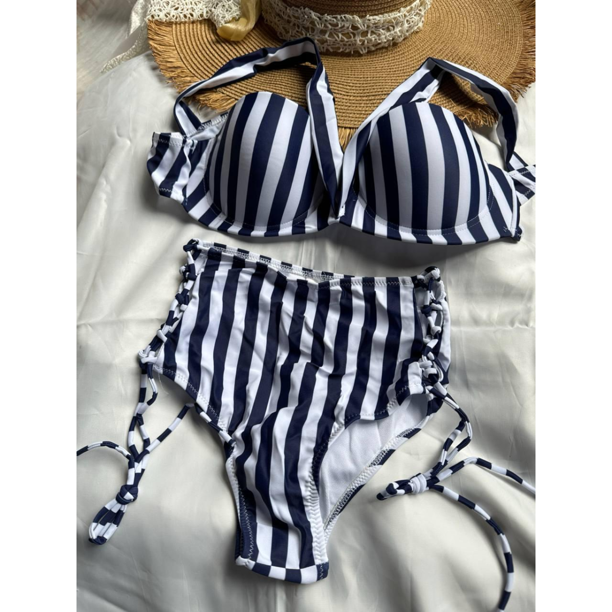 Жіночий роздільний купальник з високою посадкою у смужку Білий S