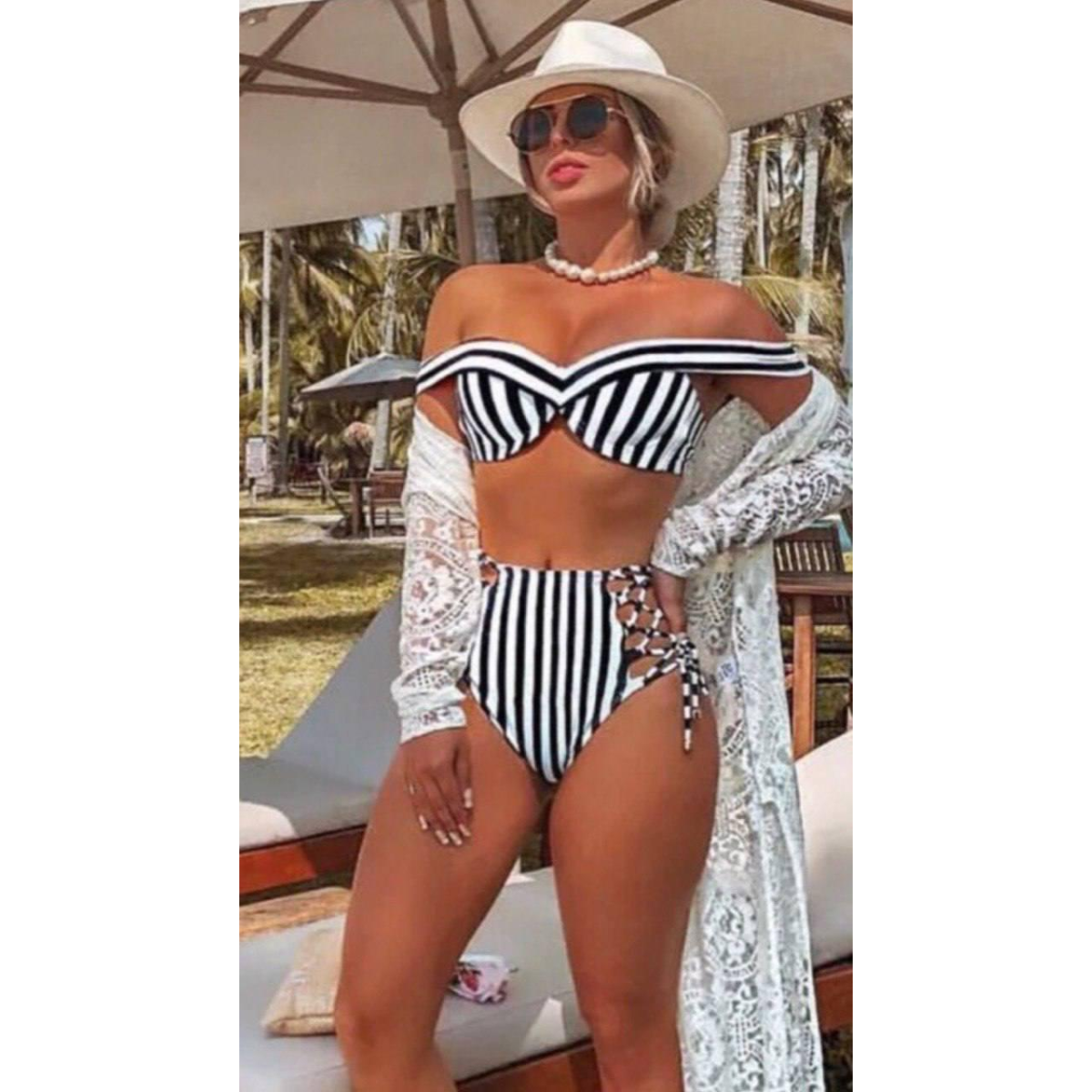 Жіночий роздільний купальник з високою посадкою.