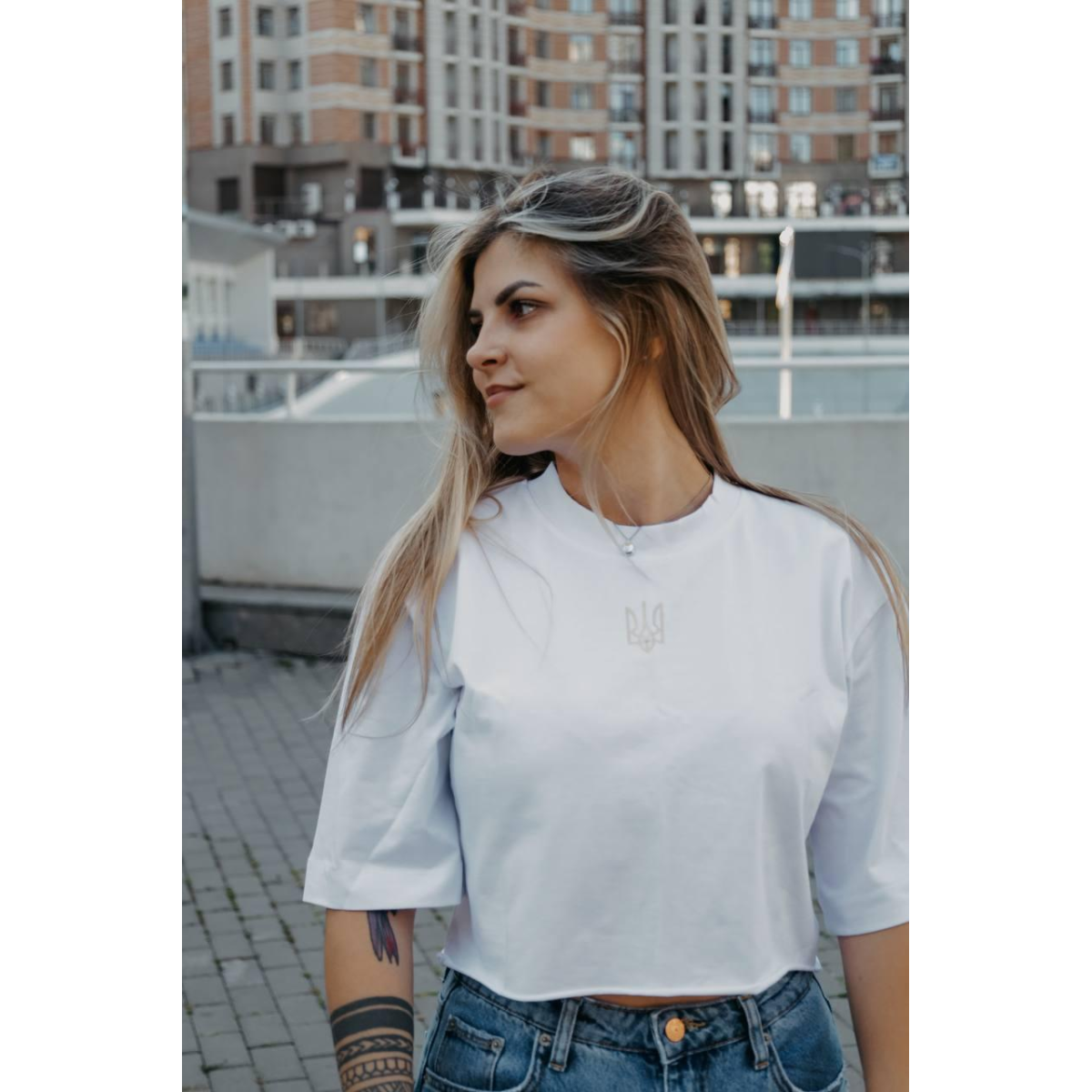 Укорочена футболка з гербом із турецького куліра Підкресліть свою індивідуальність та стиль із нашою вкороченою футболкою, виконаною з високоякісного турецького куліра. Доступна у двох універсальних кольорах - білому та чорному, ця футболка стане ідеальним доповненням до вашого гардеробу, принісши нотку елегантності та комфорту. Турецький кулір - це м“яка та повітропроникна тканина, відома своєю довговічністю та комфортом. Вона забезпечує приємні відчуття на шкірі та підходить для щоденного носіння. Футболка представлена в класичних кольорах - білому та чорному, що робить її універсальною та легко поєднується з будь-якими елементами гардеробу. Довжина футболки 45 см створює модний укорочений силует, який чудово поєднується з високими брюками, спідницями чи шортами, надаючи вашому образу сучасного та свіжого вигляду. Вільний крій та якісні шви забезпечують відмінну посадку та свободу рухів, роблячи цю футболку ідеальною для активного та повсякденного носіння. Відкрийте для себе ідеальне поєднання комфорту та стилю з нашою укороченою футболкою з турецького куліра. Доступна в білому та чорному кольорах, ця футболка стане вашим улюбленим елементом гардеробу, підкреслюючи вашу індивідуальність та почуття стилю. Розміри: 42/44 ОГ 80-95см, ОТ 65-95см 46/48 ОГ 90-110см, ОТ 80-110см