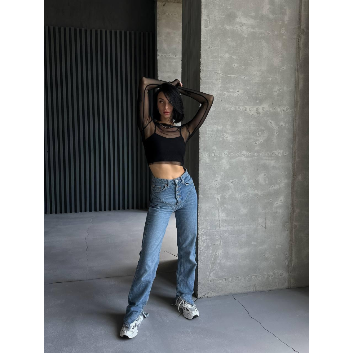 Жіночий топ +лонгслів у сіточку Чорний, 44/46