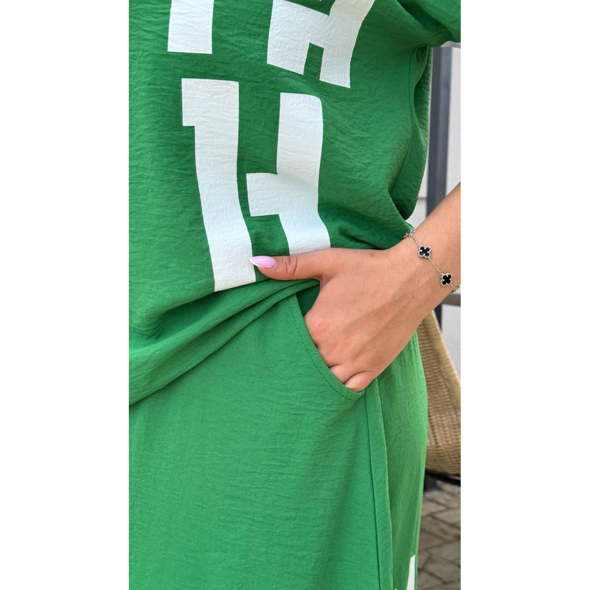 Футболка та спідниця мають вільний крій, який забезпечує свободу рухів та невимушений стиль, що ідеально підходить для повсякденного носіння.