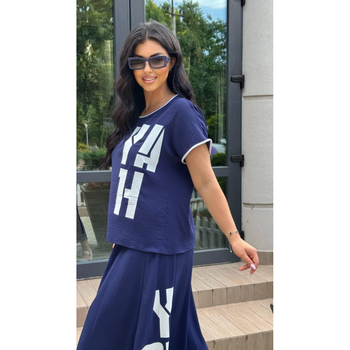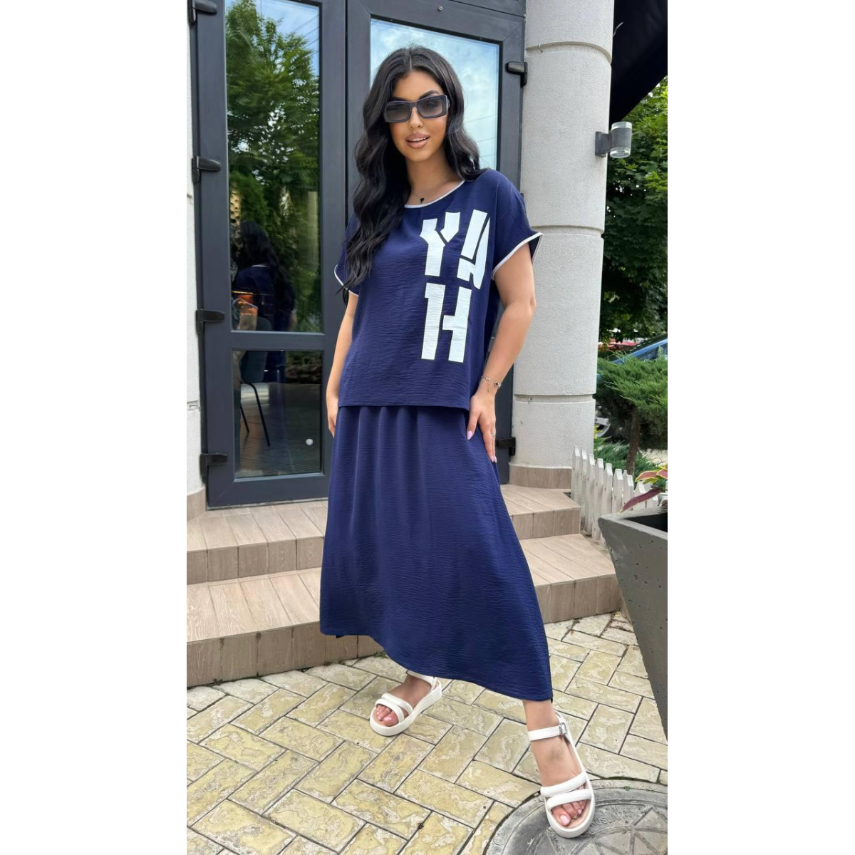 Футболка та спідниця мають вільний крій, який забезпечує свободу рухів та невимушений стиль, що ідеально підходить для повсякденного носіння.